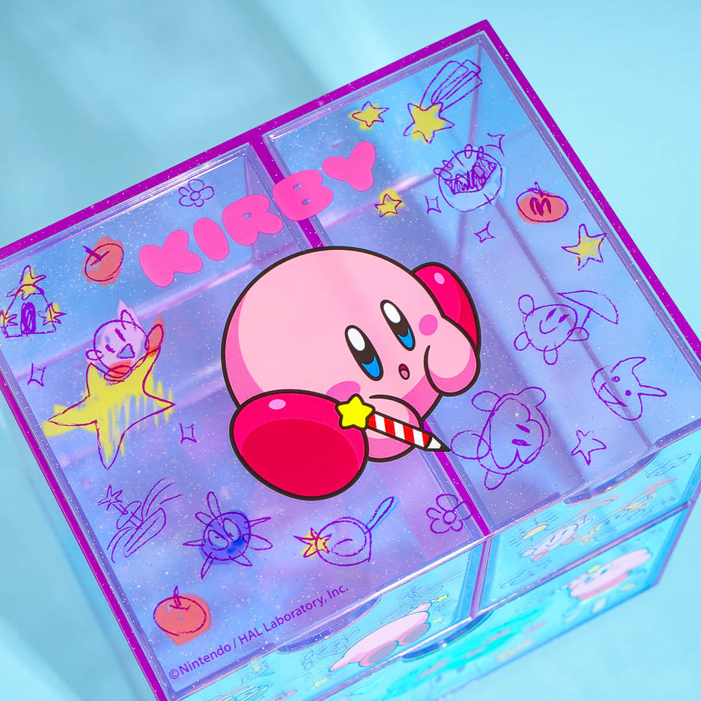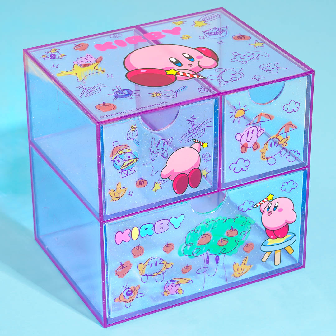 Organize your small items with this kawaii clear chest! It showcases cute prints of Kirby doodling his friends and lots of apples. This chest has three multi-sized drawers so you can easily sort your stuff.