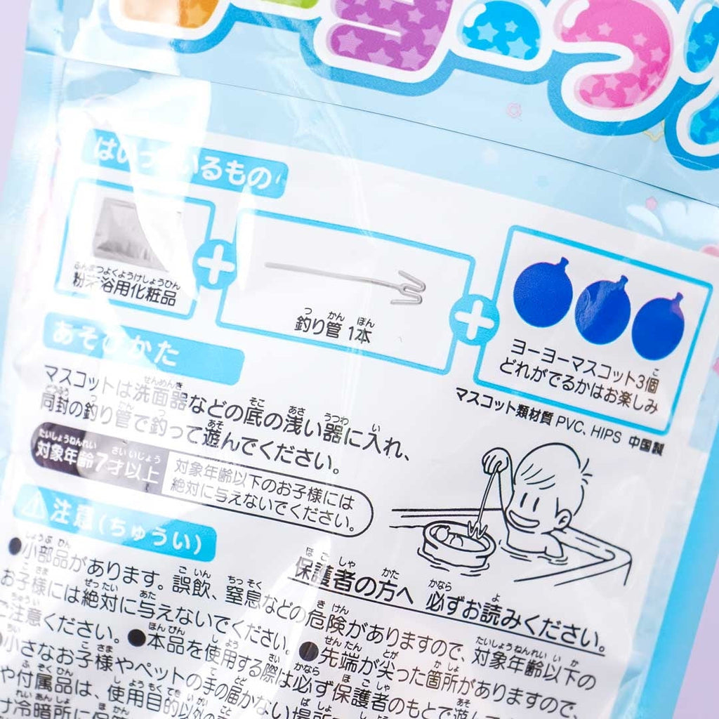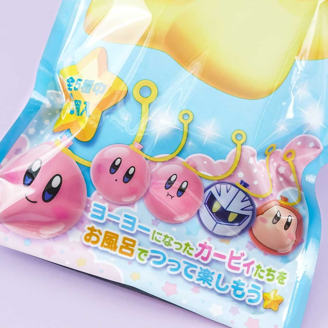 Includes: 1 x bath salt pack, 1 x fishing hook, 3 x Kirby character yoyo fishing toys