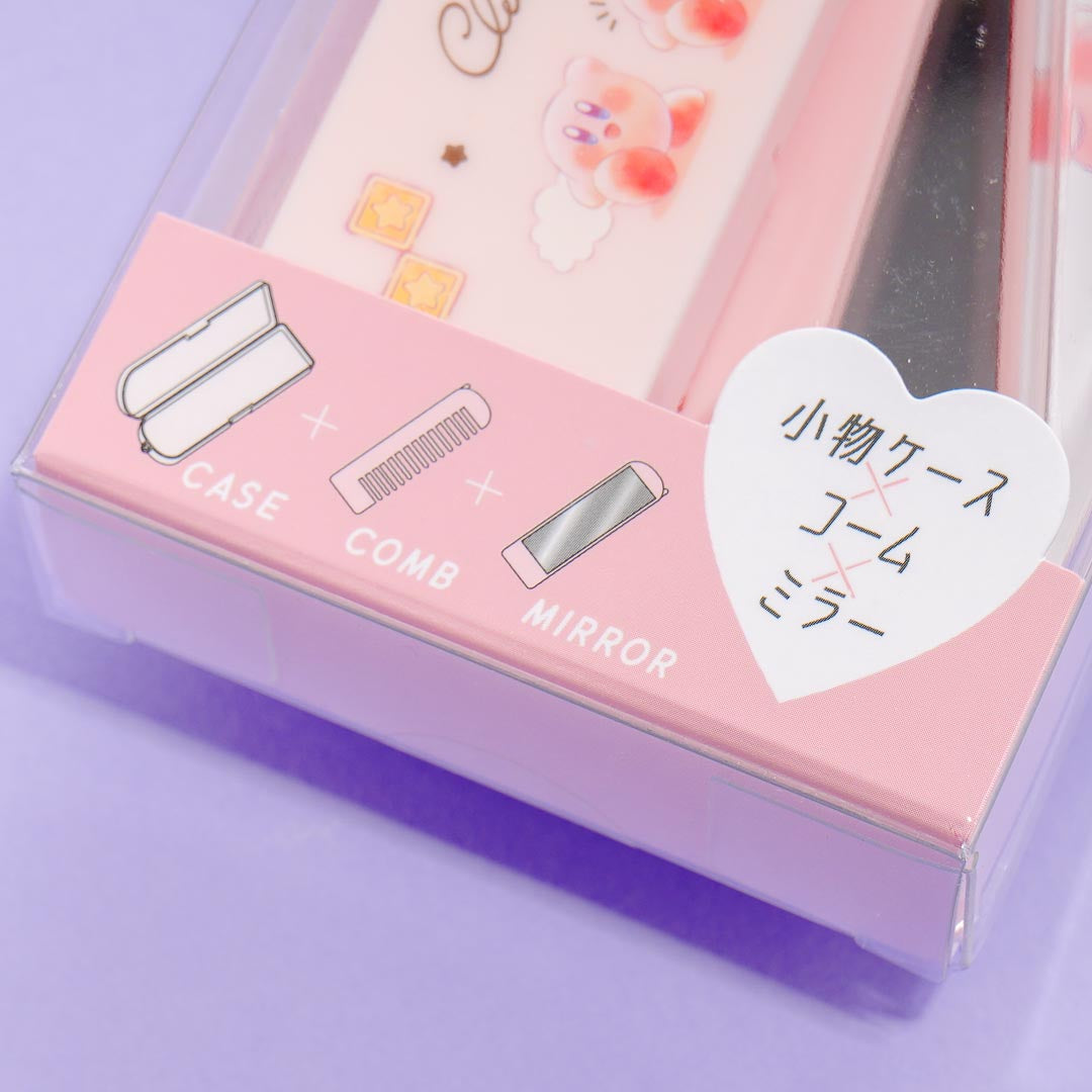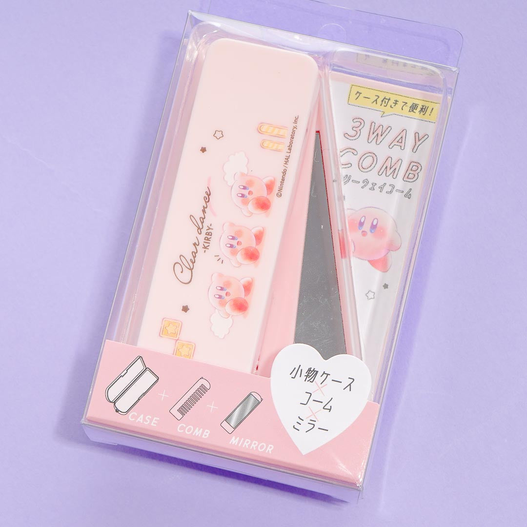 Don't forget to bring along this super kawaii 3-way comb with you when you head out of the house. It's illustrated with a group of dancing Kirbies! This 3-way comb includes a case, a comb, and a mirror that you can use to fix your hair.