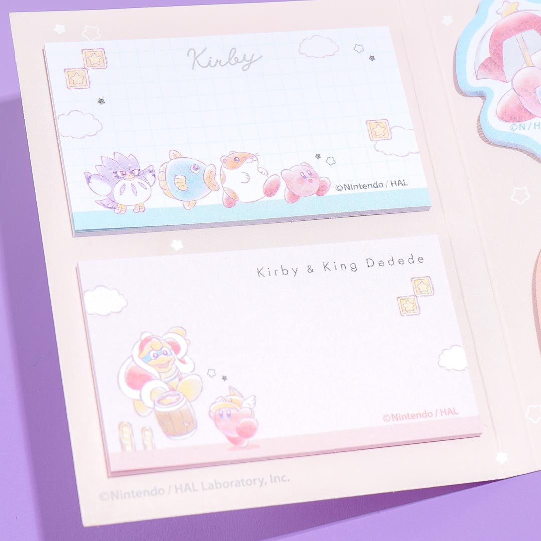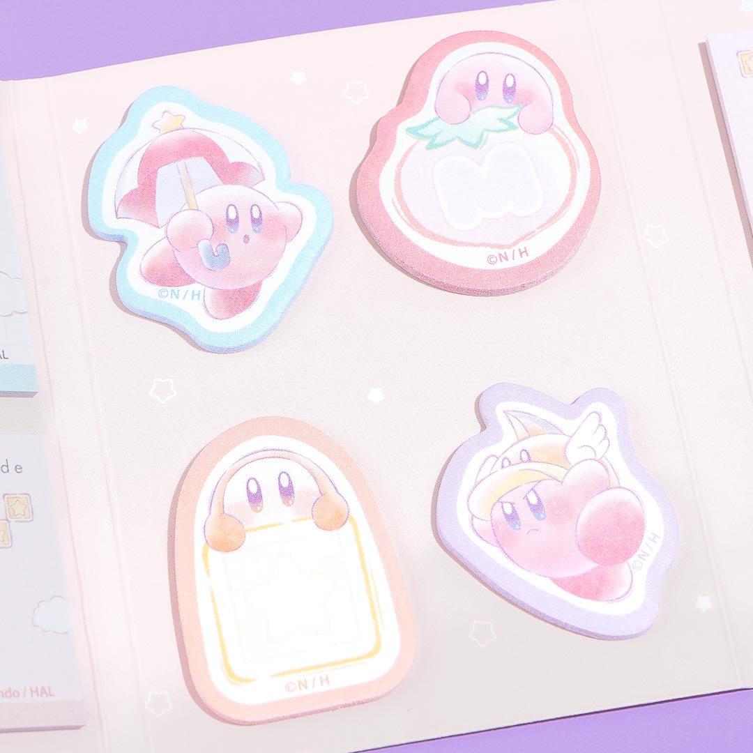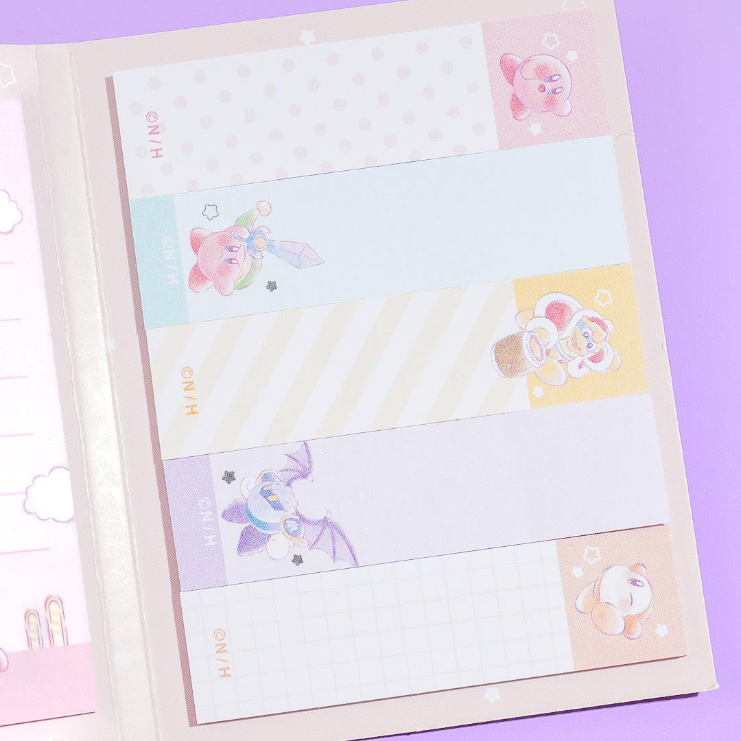 Use this super kawaii set of sticky notes during your study time! It features cute prints of Kirby with the Star Allies. The set comes in a booklet-style cover with illustrations of dancing Kirbies.