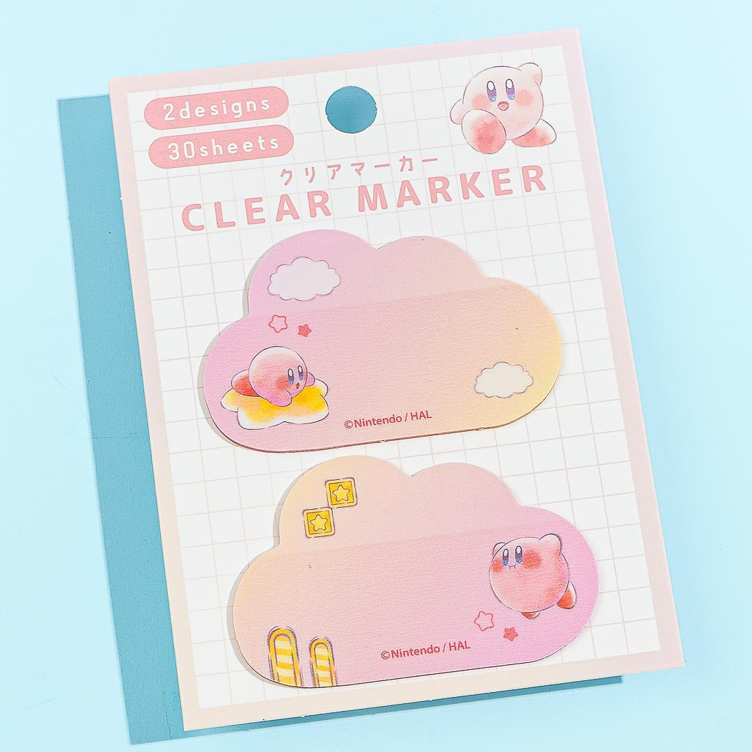 Use these sticky notes to write down important reminders. Each sheet is clear so you can stick them on your notebook sheets or textbooks! They feature prints of Kirby floating and riding on a warp star!