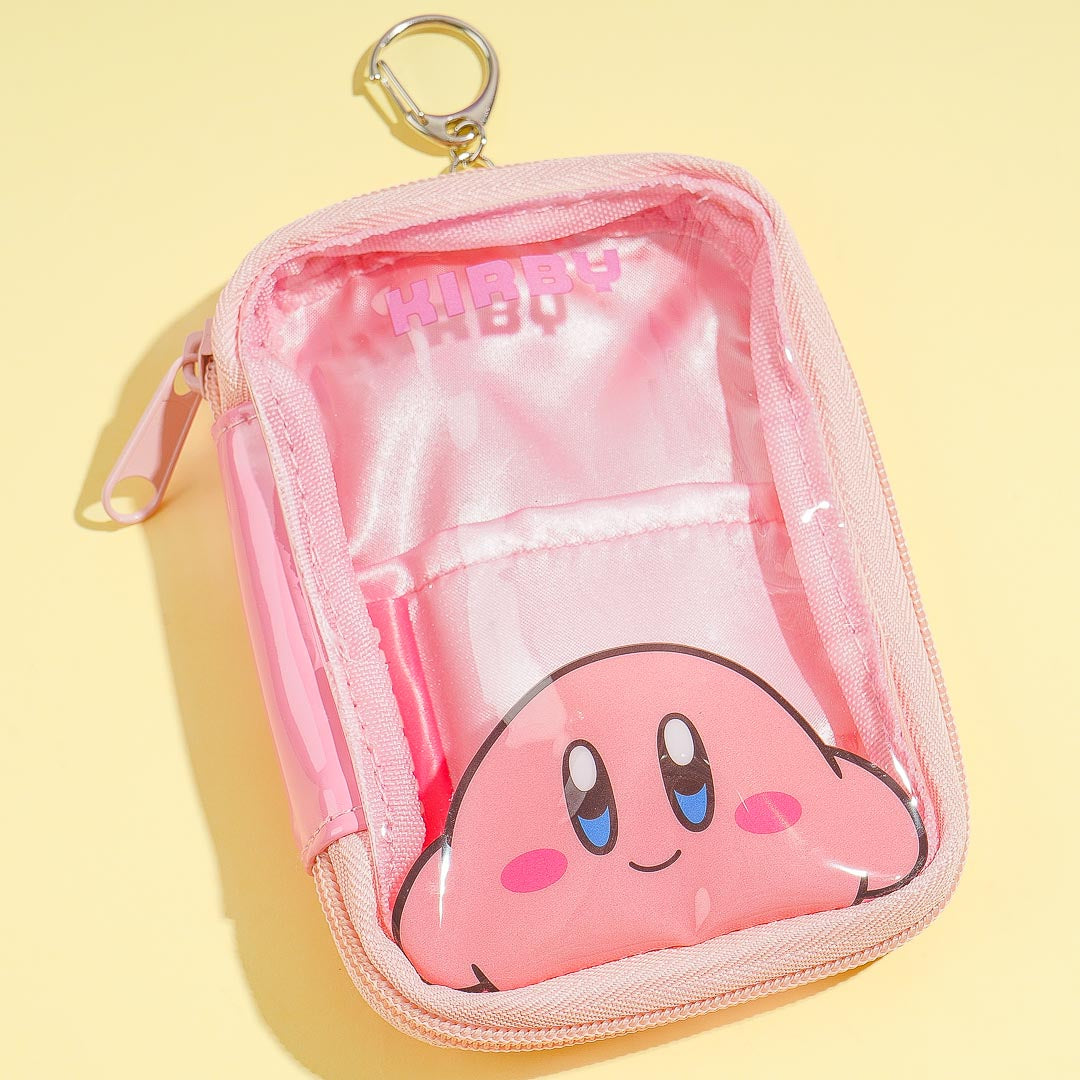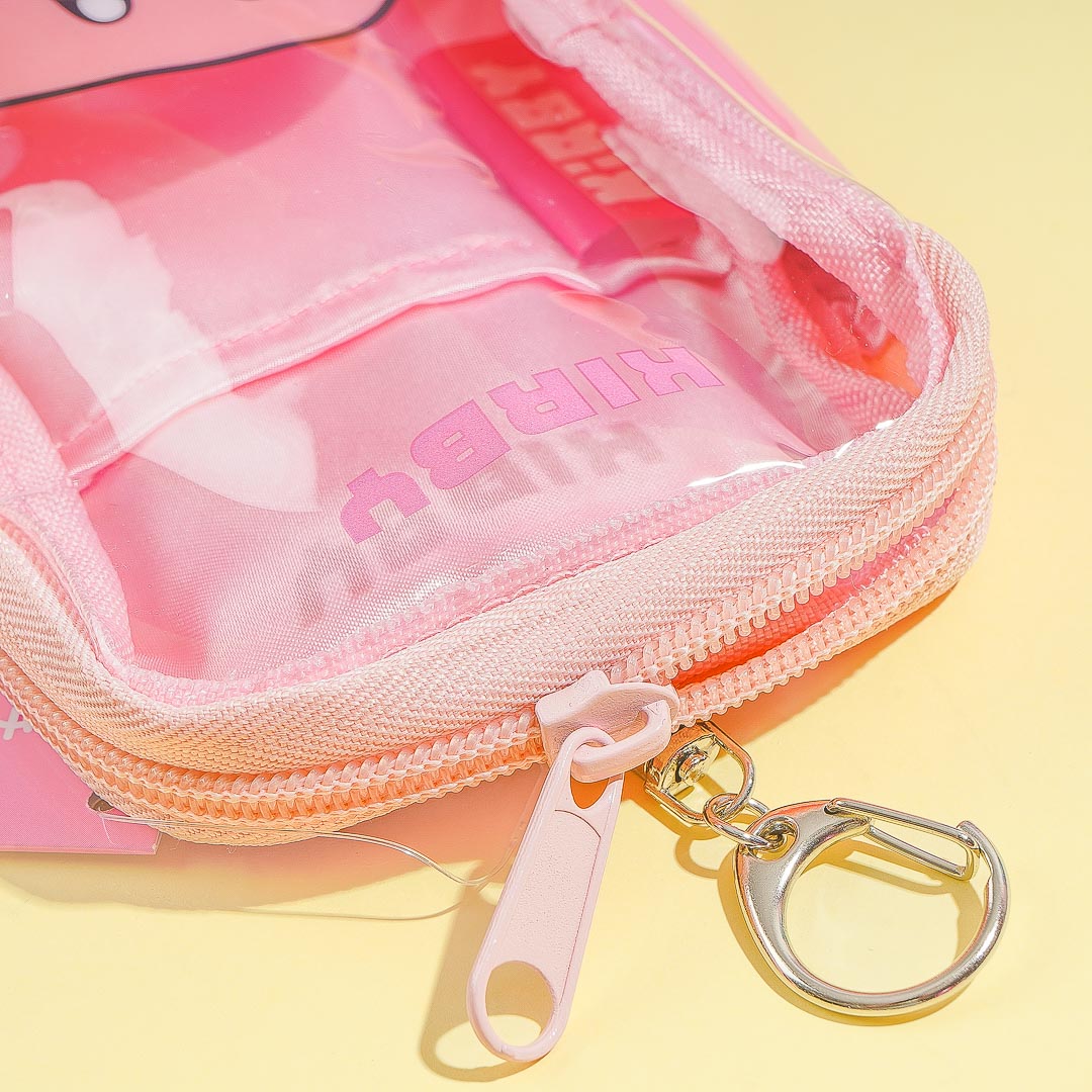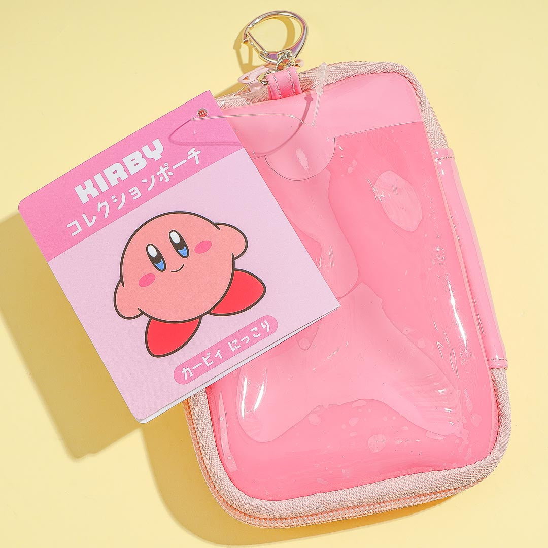 Get organized and store your trinkets inside this cute zippered pouch. The clear front panel of this pouch showcases a print of a happy Kirby! It has a metal clip on top so you can attach it to your favorite bag.