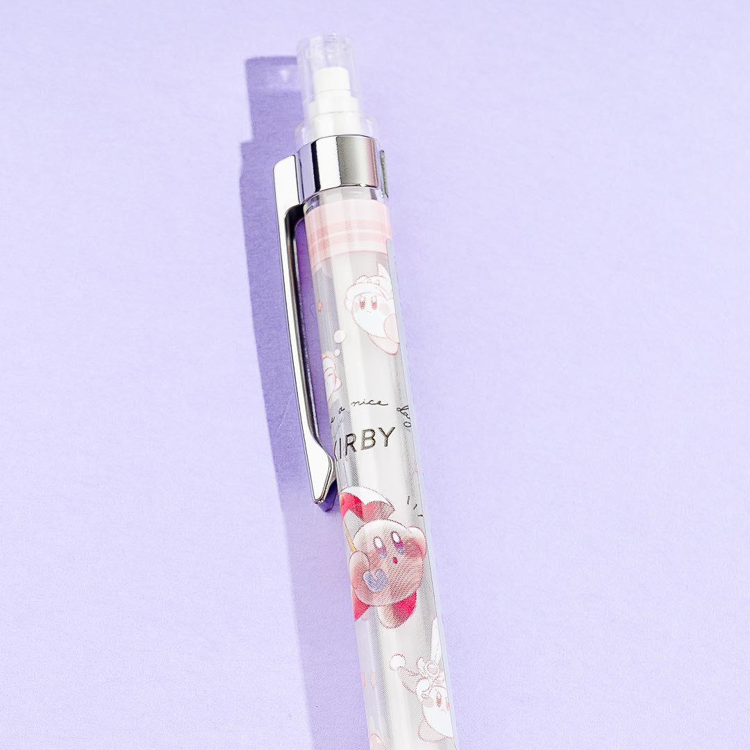 This cute mechanical pencil is illustrated with prints of Kirby using his copy ability! Use it to write in your diary. Don't forget to place it in your pencil case.