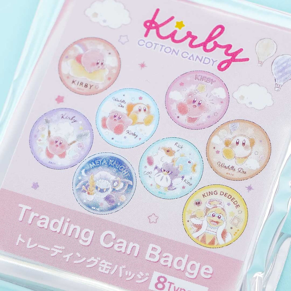 Add this super kawaii badge from the "Kirby Cotton Candy Trading Can Badge" series to your kawaii collection! It features a print of a Kirby character among cotton candy clouds. The entire series features 8 different designs. Surprise yourself with a random design when you order!