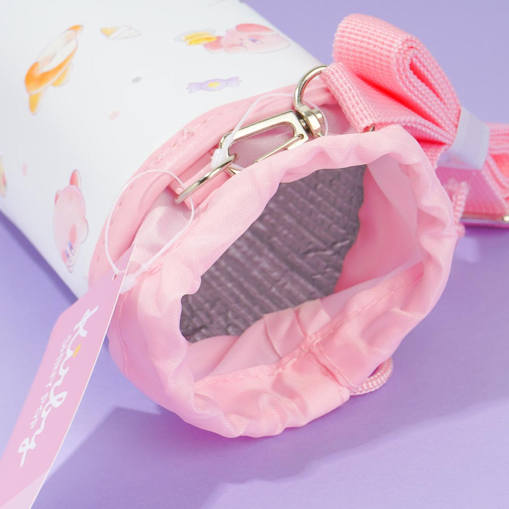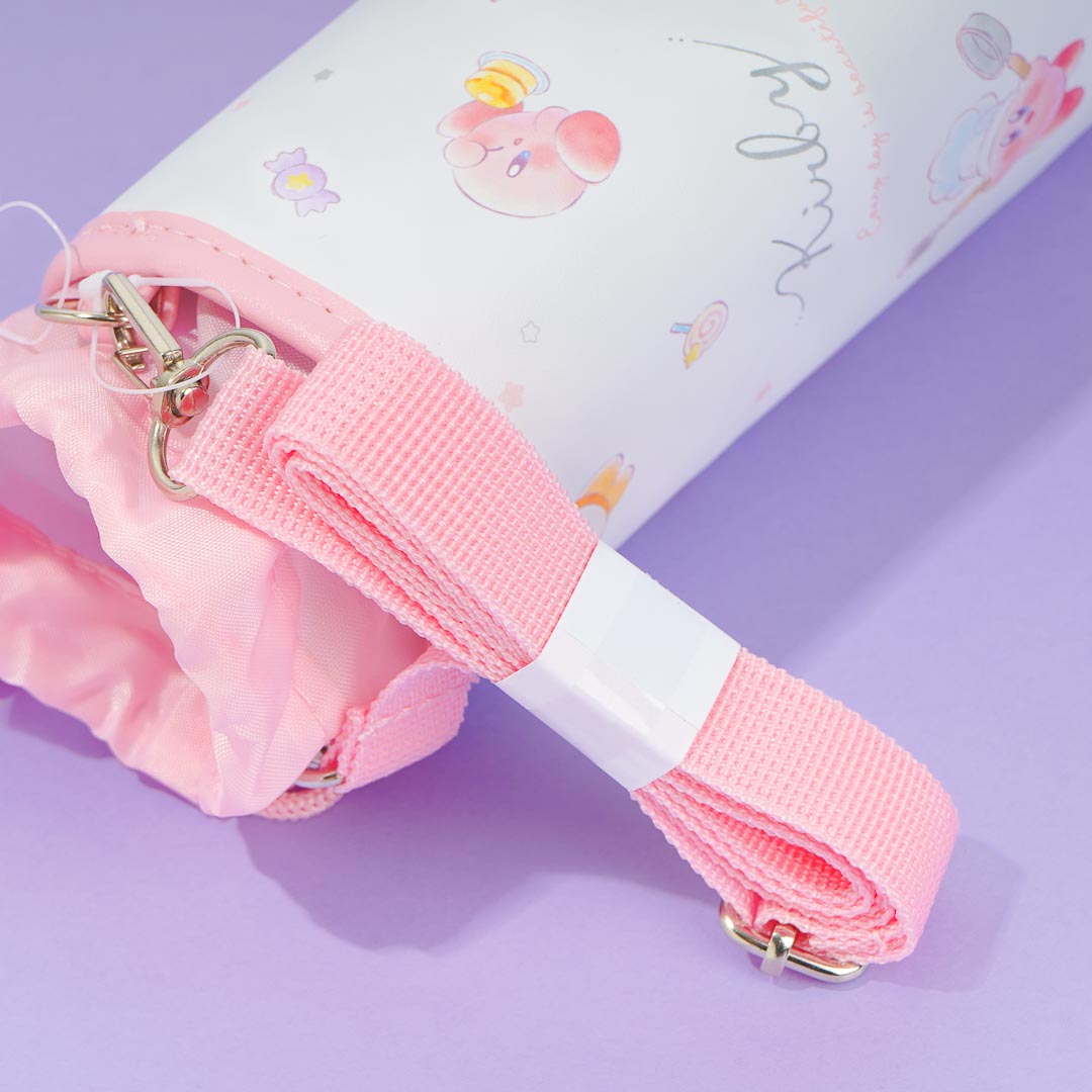 This kawaii water bottle case is covered in prints of Kirby and Waddle Dee making yummy treats. It's perfect for bringing along water bottles to school. You can easily carry it around thanks to its shoulder strap.