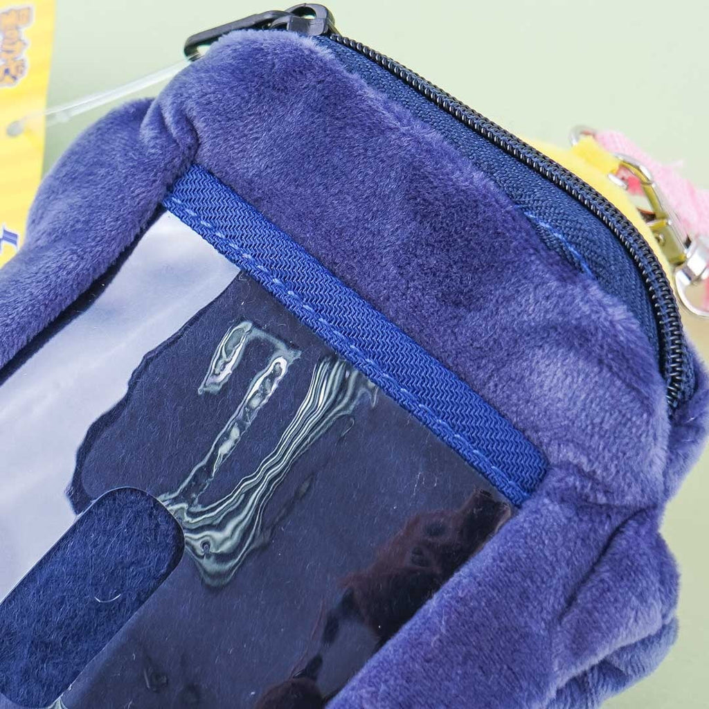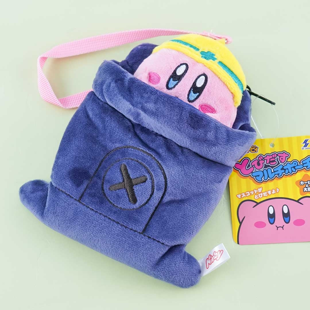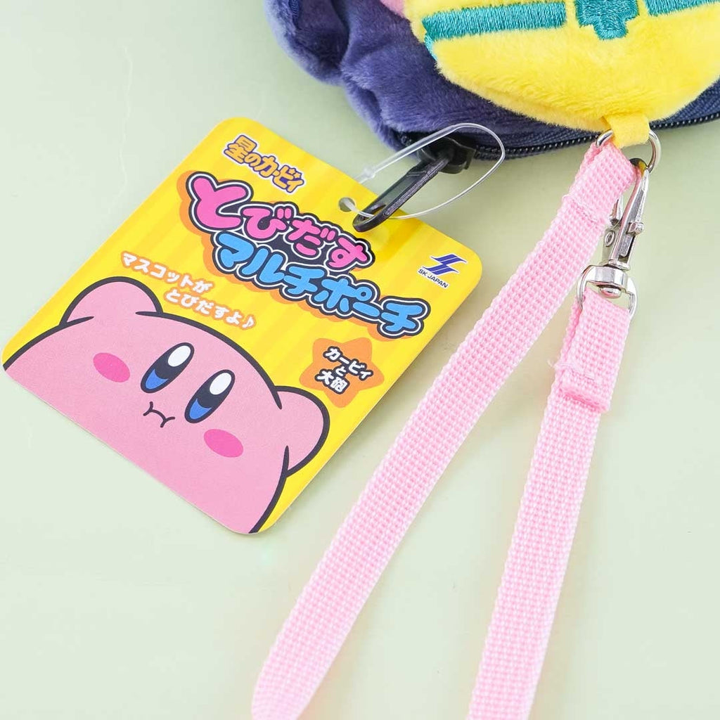 Use this super cute multi-use pouch to bring your essentials like your wallet and bus pass! It has a Kirby plushie attached to a reel with a flexible strap! You can make Kirby jump out by pulling him from the pouch. This pouch has a transparent card slot at the back, a zippered compartment for small things, and a strap with a metal hook.