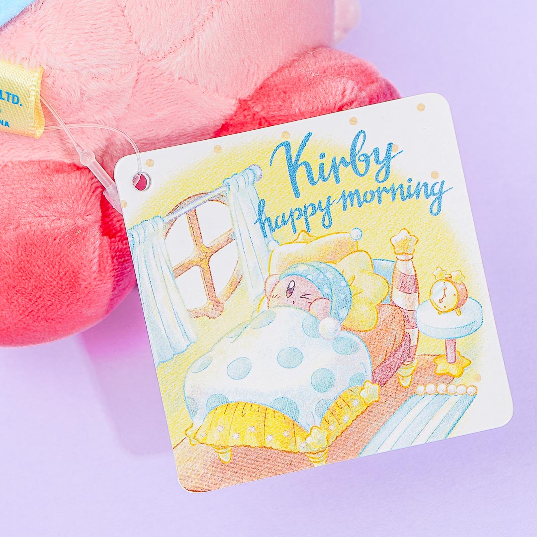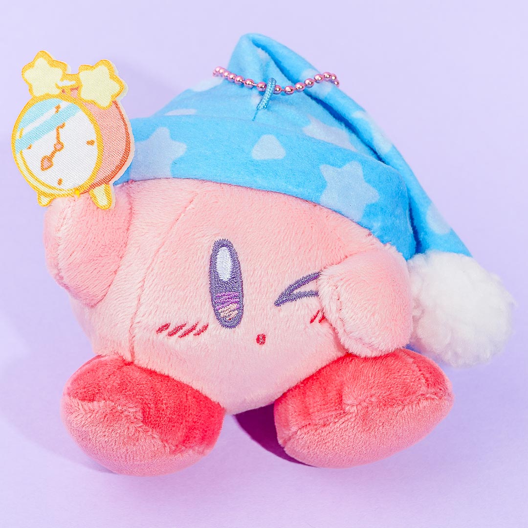 Kirby just got woken up by the alarm! Have fun waking up together with this super kawaii mini-sized Kirby plushie. It comes from the Kirby Happy Morning series. You can also take this plushie with you by attaching it to your bag with its removable ball chain.