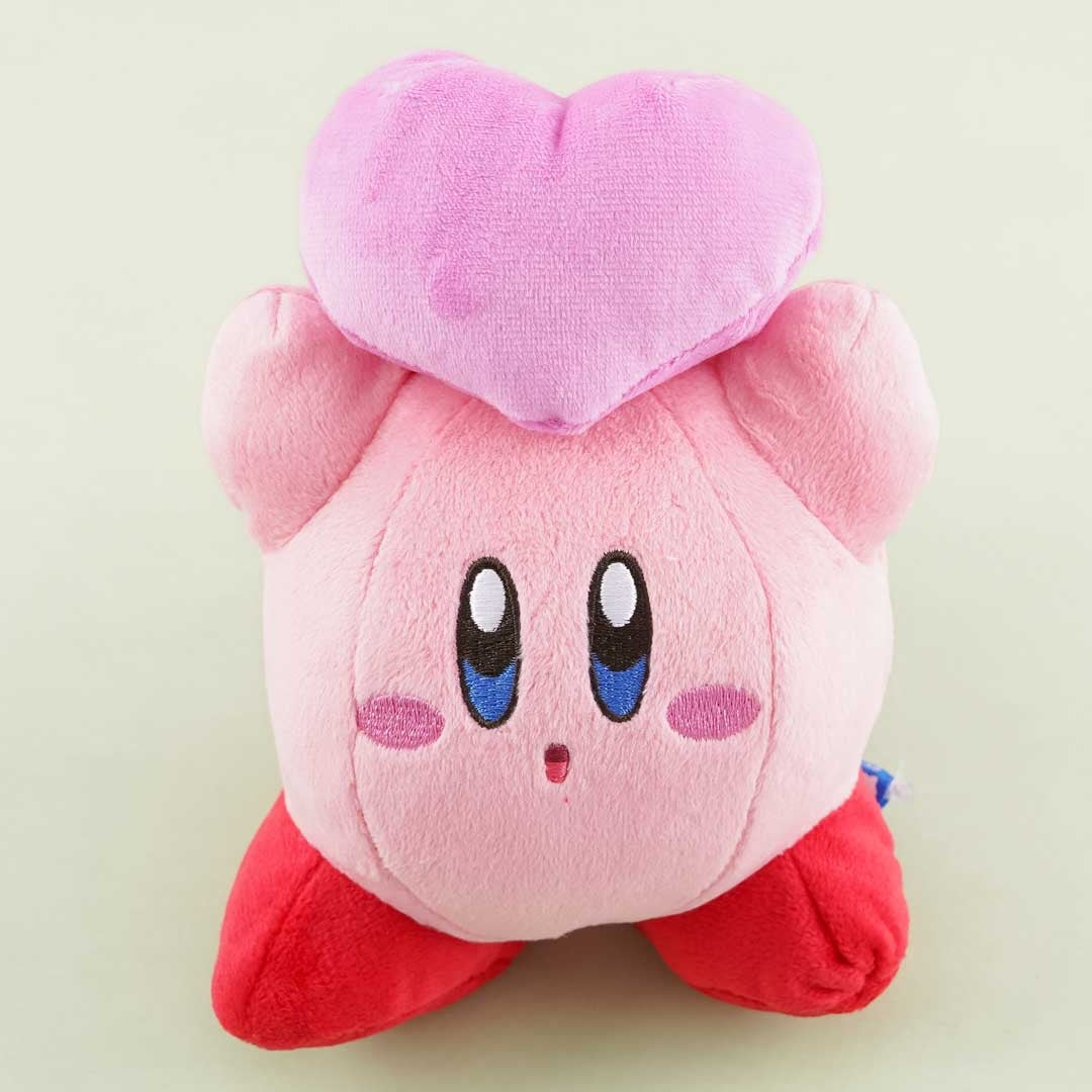 Have fun cuddling with this super cute medium-sized Kirby plushie! This super-soft cutie is holding a heart as if it's being thrown in the air!