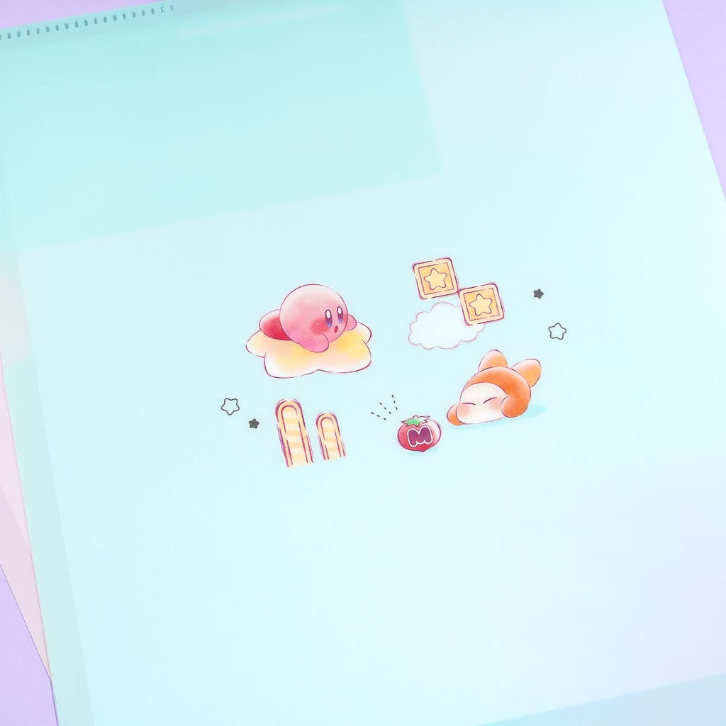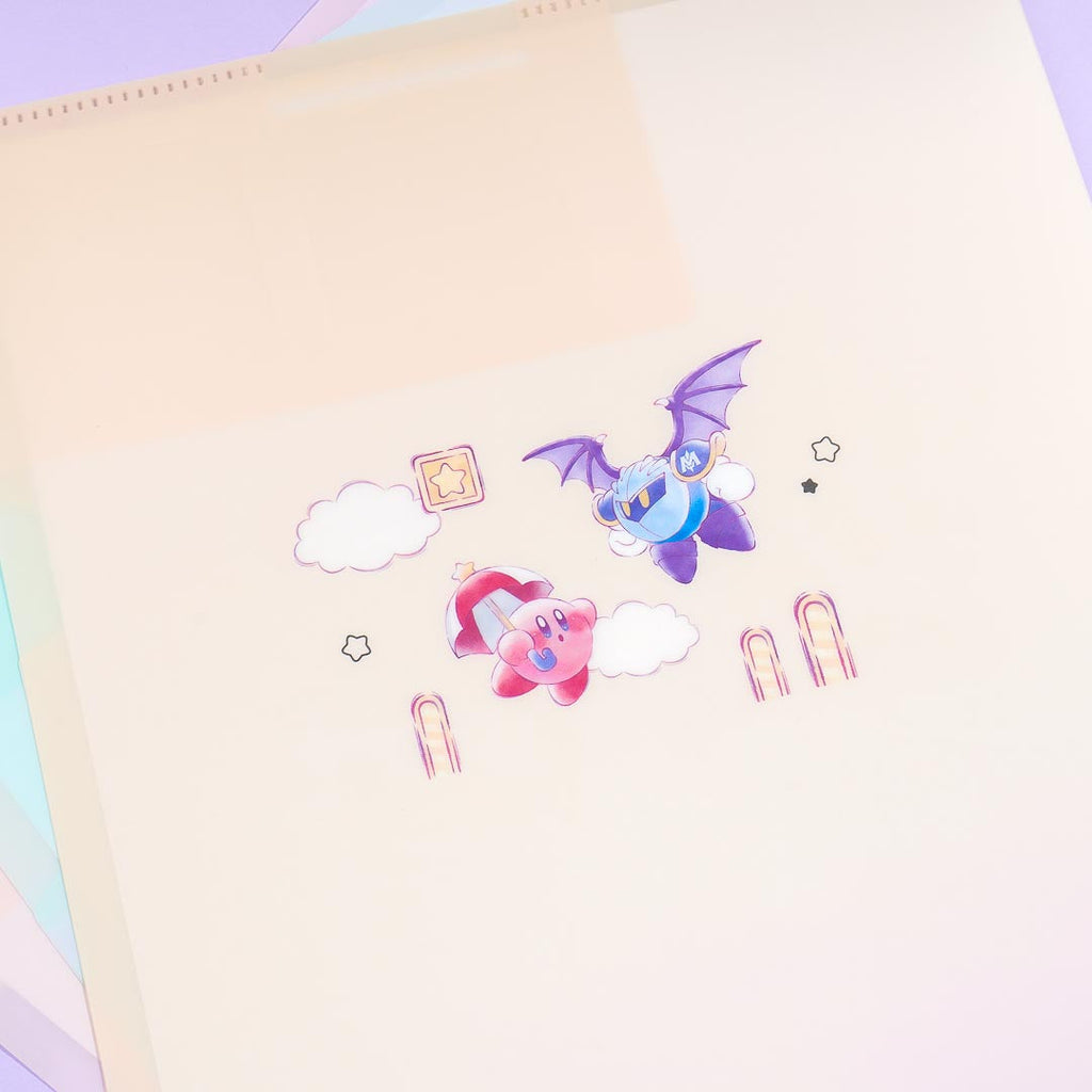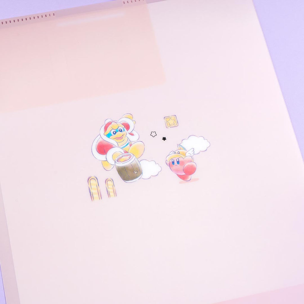 Organize your files using this set of cute plastic folders! It showcases kawaii illustrations of Kirby and his friends doing the popular "Kirby Dance" whenever you clear a game level.