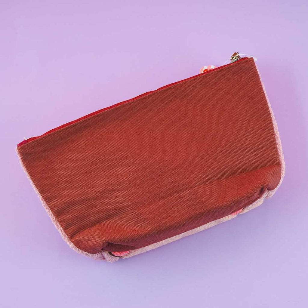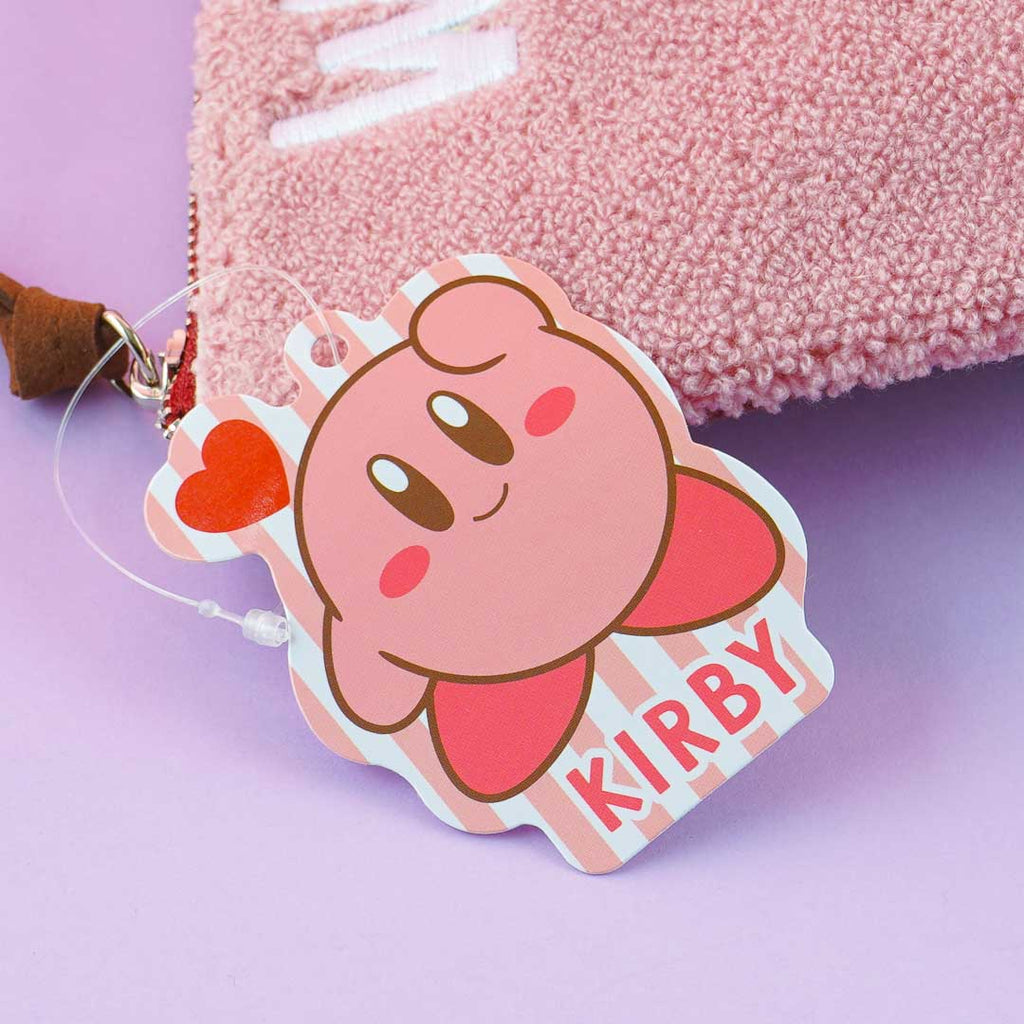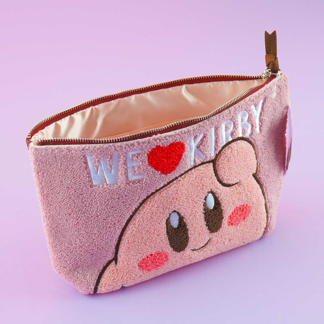Store your lipstick, gloss, mascara, and other makeup items inside this super kawaii zippered pouch. This fluffy pouch features a print of Kirby with the words "We Heart Kirby."