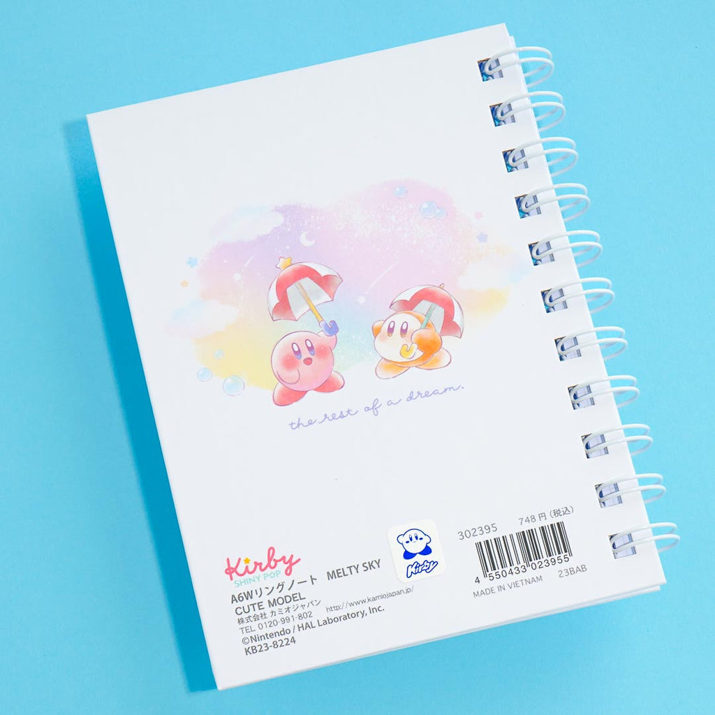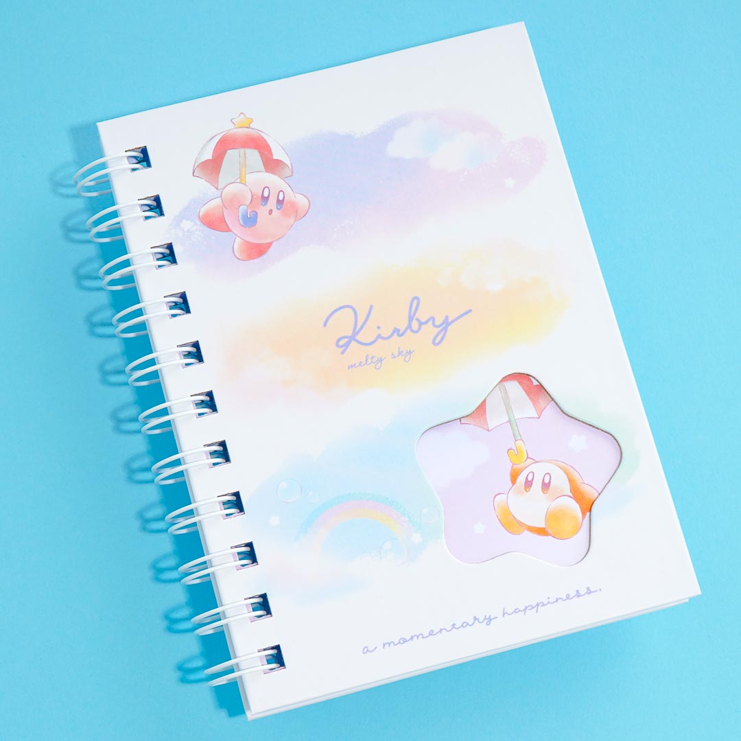 This cute ringed A6 notebook is illustrated with Kirby and Waddle Dee flying in the sky! Have fun sketching on the grid pages of this cute notebook.
