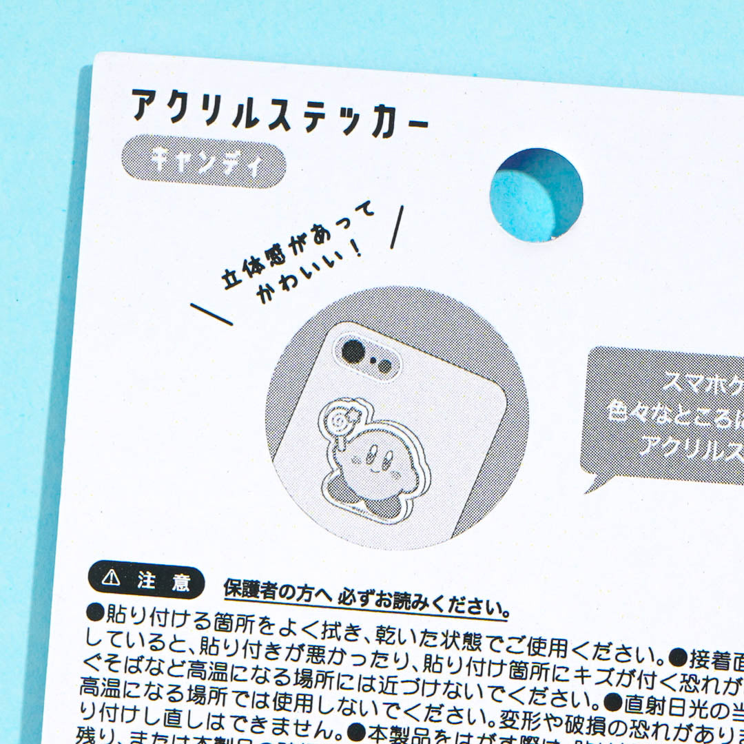 Decorate your phone case with this kawaii acrylic sticker. It showcases Kirby carrying the rare item, Invincible Candy! This sticker has a nice 3D design that makes it pop out.