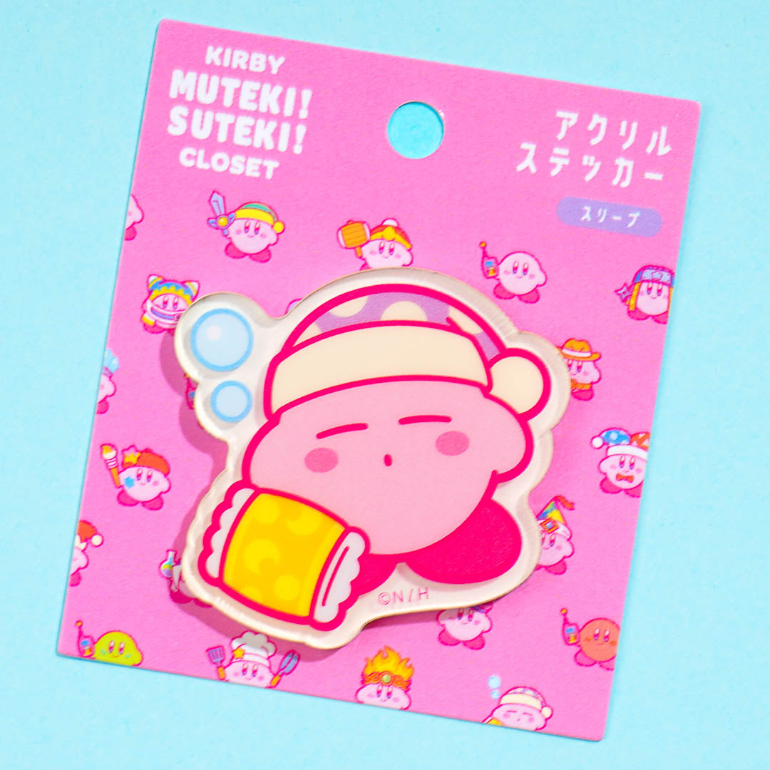 This cute acrylic sticker features a sleeping Kirby! Use it to decorate your smartphone case or your tablet cover. It has a nice 3D design that makes it pop out!