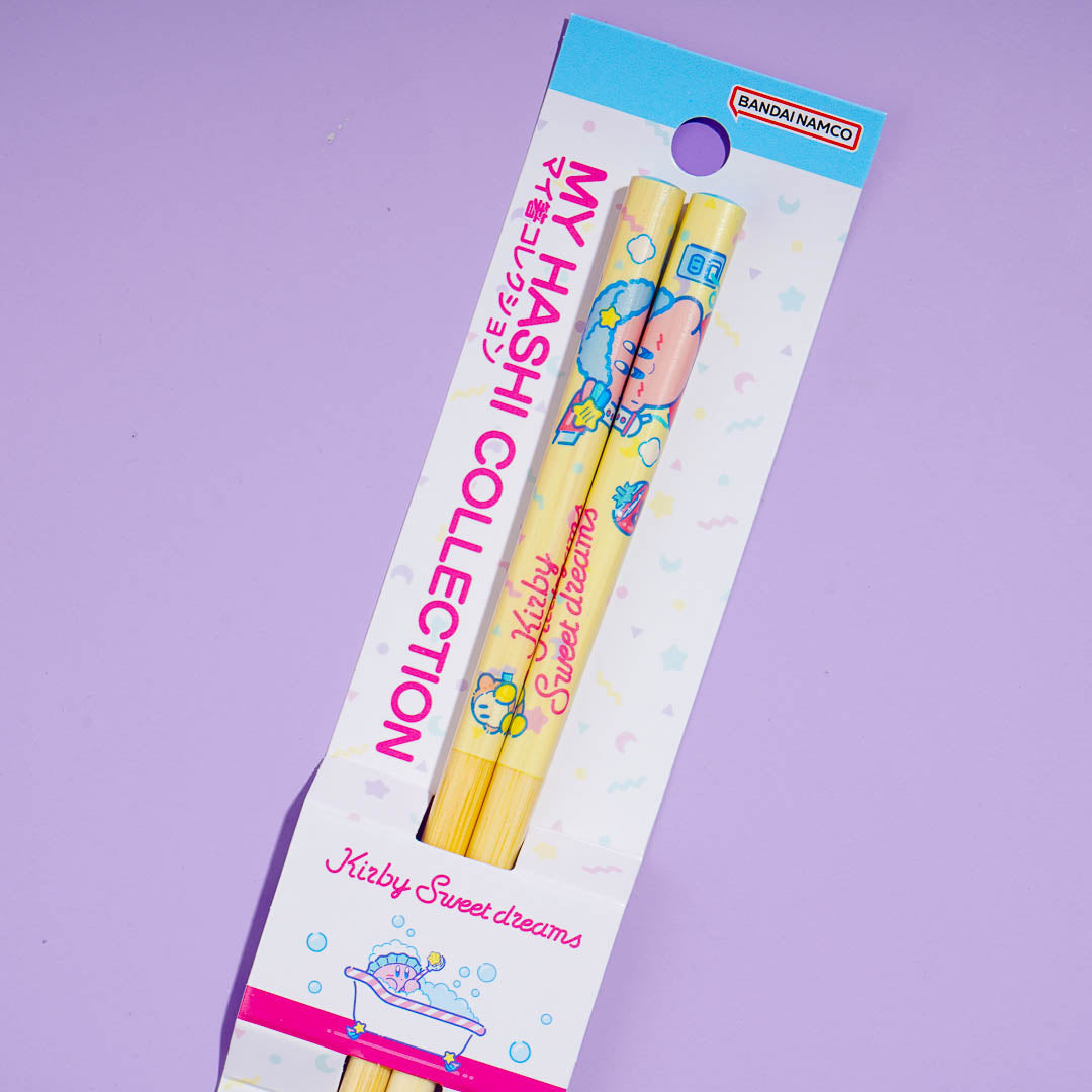 This set of chopsticks comes from the Kirby My Hashi collection. Don't forget to bring these kawaii chopsticks along with your bento box! Each one features a print of Kirby drying its head after bath time.