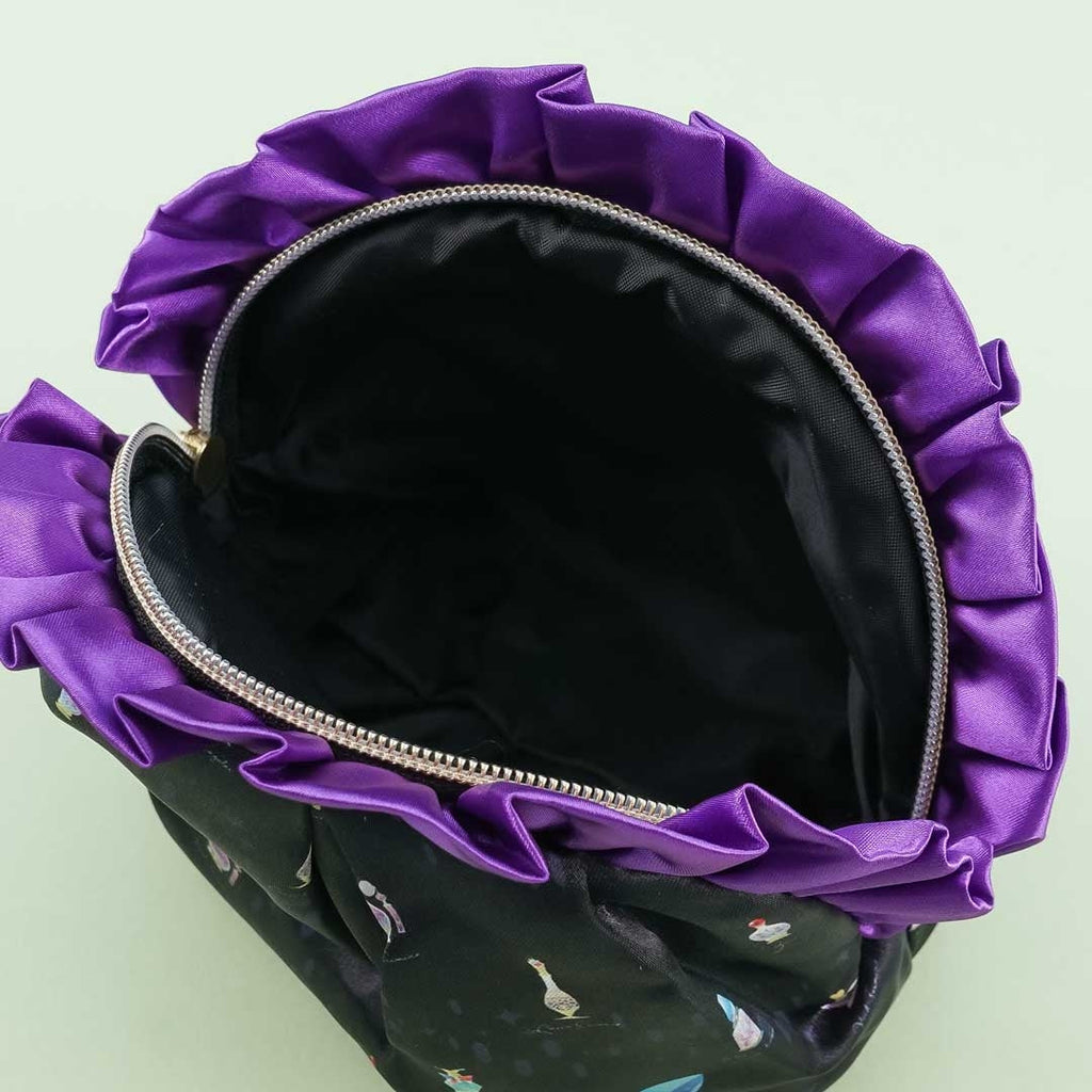 • A kawaii zippered fluffy pouch illustrated with Kirby and bottles of perfume