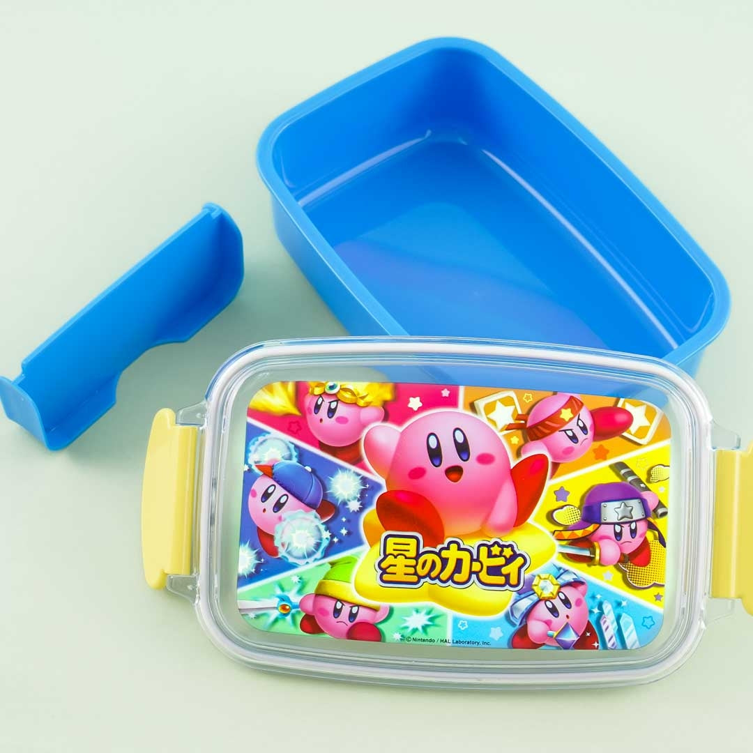 This super kawaii bento box is illustrated with prints of Kirby wearing costumes from the videogame "Kirby of the Stars." It has a lid with two snap-on locks and a detachable divider. Use it to bring your favorite meals for lunch! You can microwave your meals in this lunch box as long as you remove the lid.