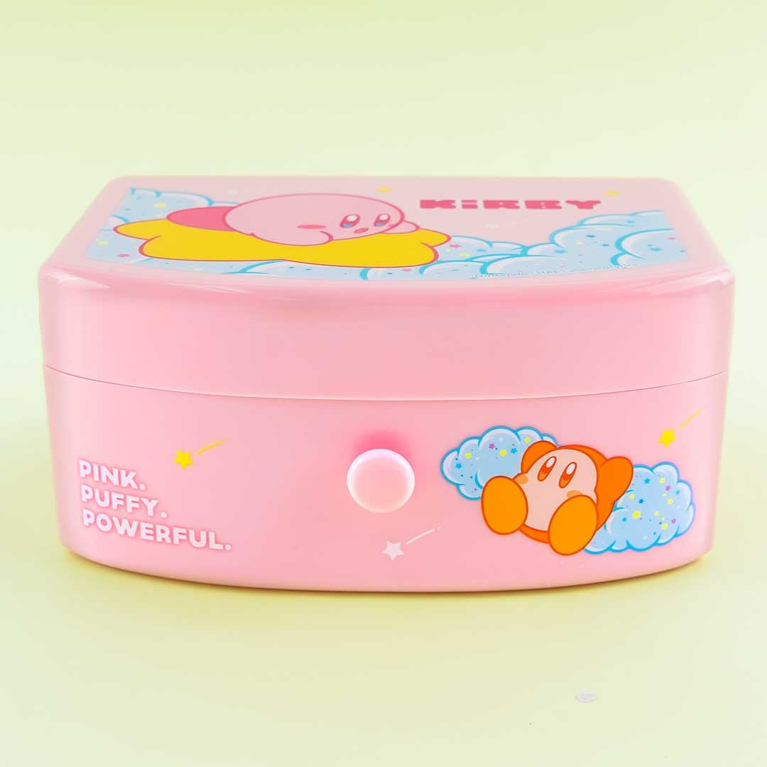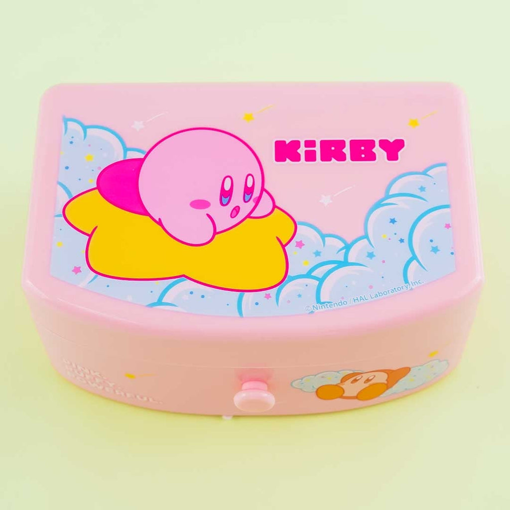 • A kawaii pink accessories box with illustrations of Kirby, his Warp Star, and Waddle Dee