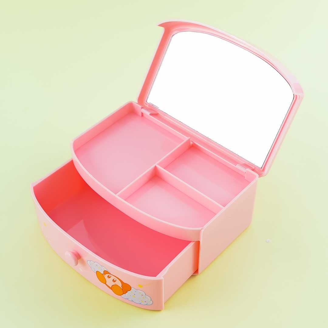 Have fun organizing your favorite accessories inside this super cute jewelry box with a dedicated bottom pull-out drawer! It’s decorated with prints of Kirby with his Warp Star, as well as his friend Waddle Dee! This useful case made of sturdy plastic also comes with a mirror and an upper shelf with multiple partitions.