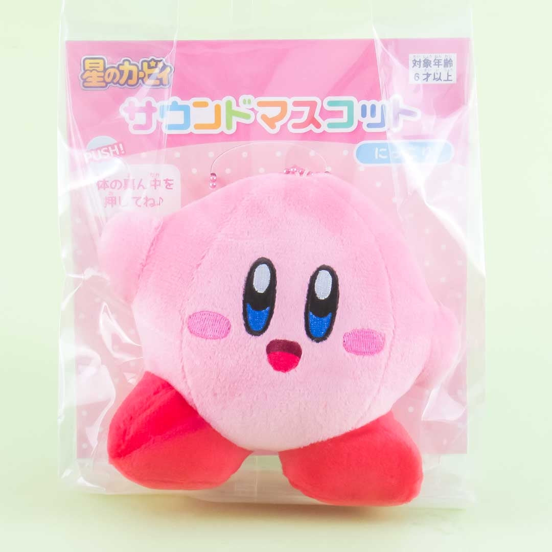 • A medium-sized smiling Kirby character plushie that produces sound and doubles as a charm