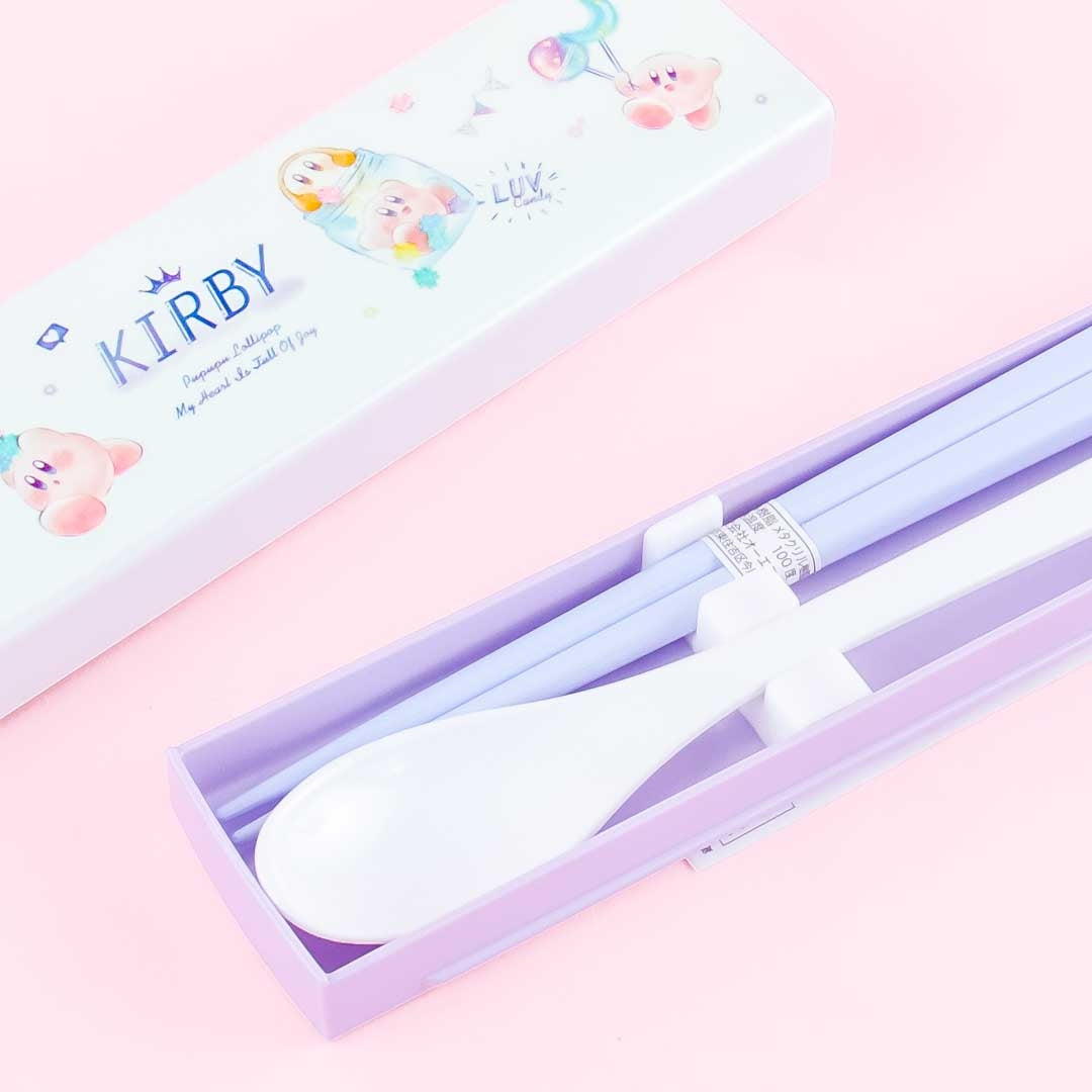 Carry this super cute utensil set when eating out with your friends! It comes with a pair of chopsticks, a spoon, and a carrying case with a sliding lid. The lid features illustrations of Kirby having a lot of fun with Waddle Dee! You can safely use these utensils as they are made with antibacterial properties that contain silver ions! The set is also made of durable material and is dishwasher safe.
