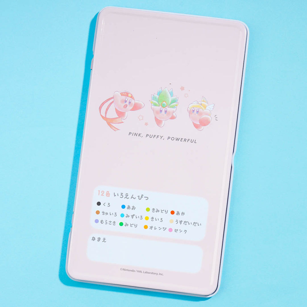 This super kawaii colored pencil set features prints of Kirby using his copy ability. Have fun using these colored pencils to draw your favorite things! They come in a neat tin case.