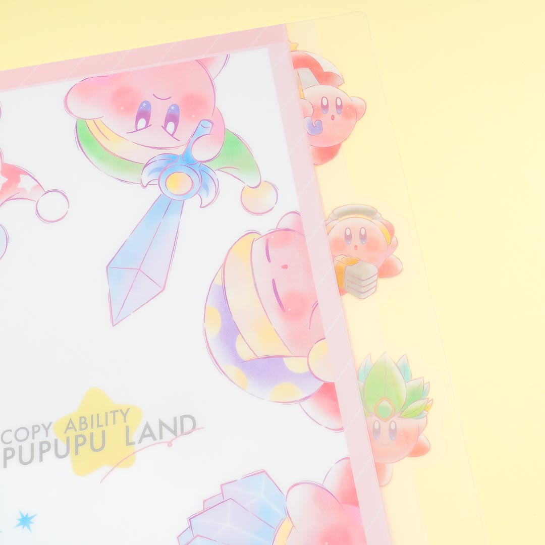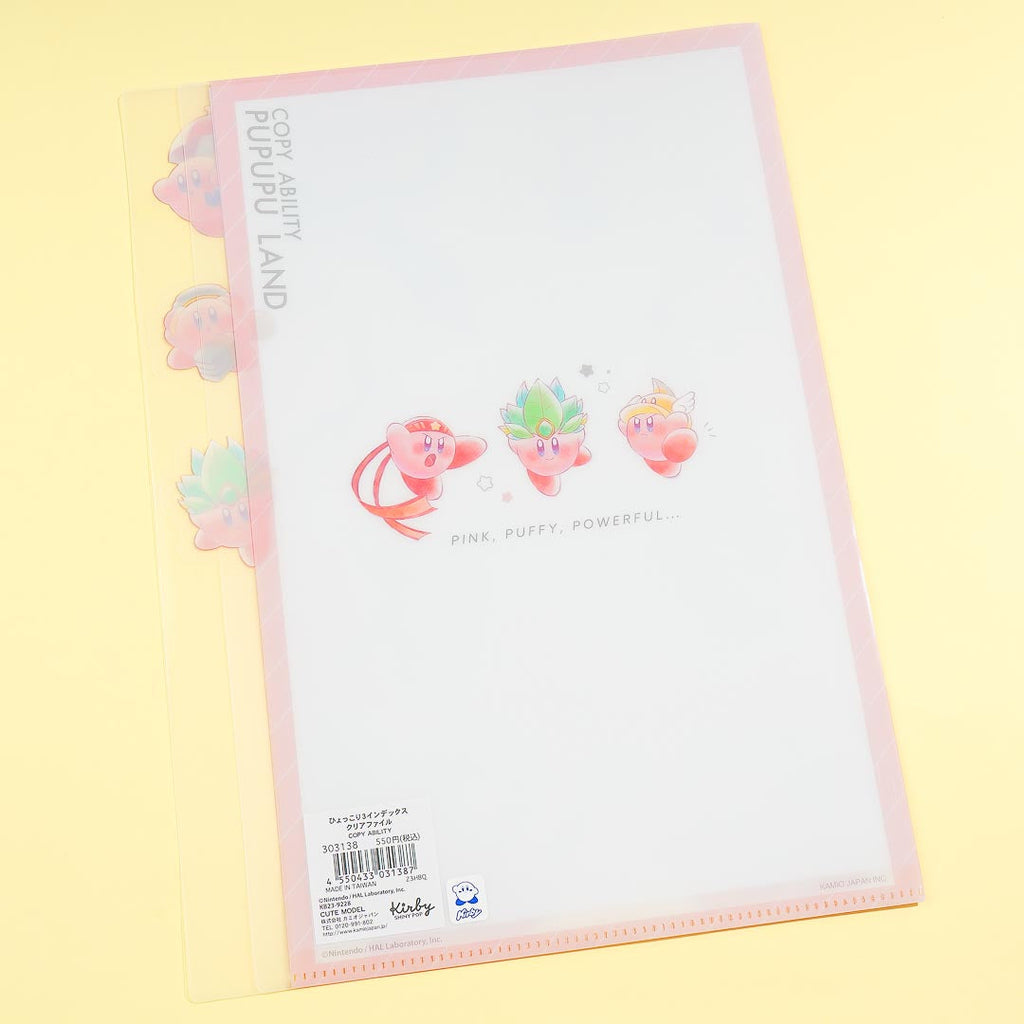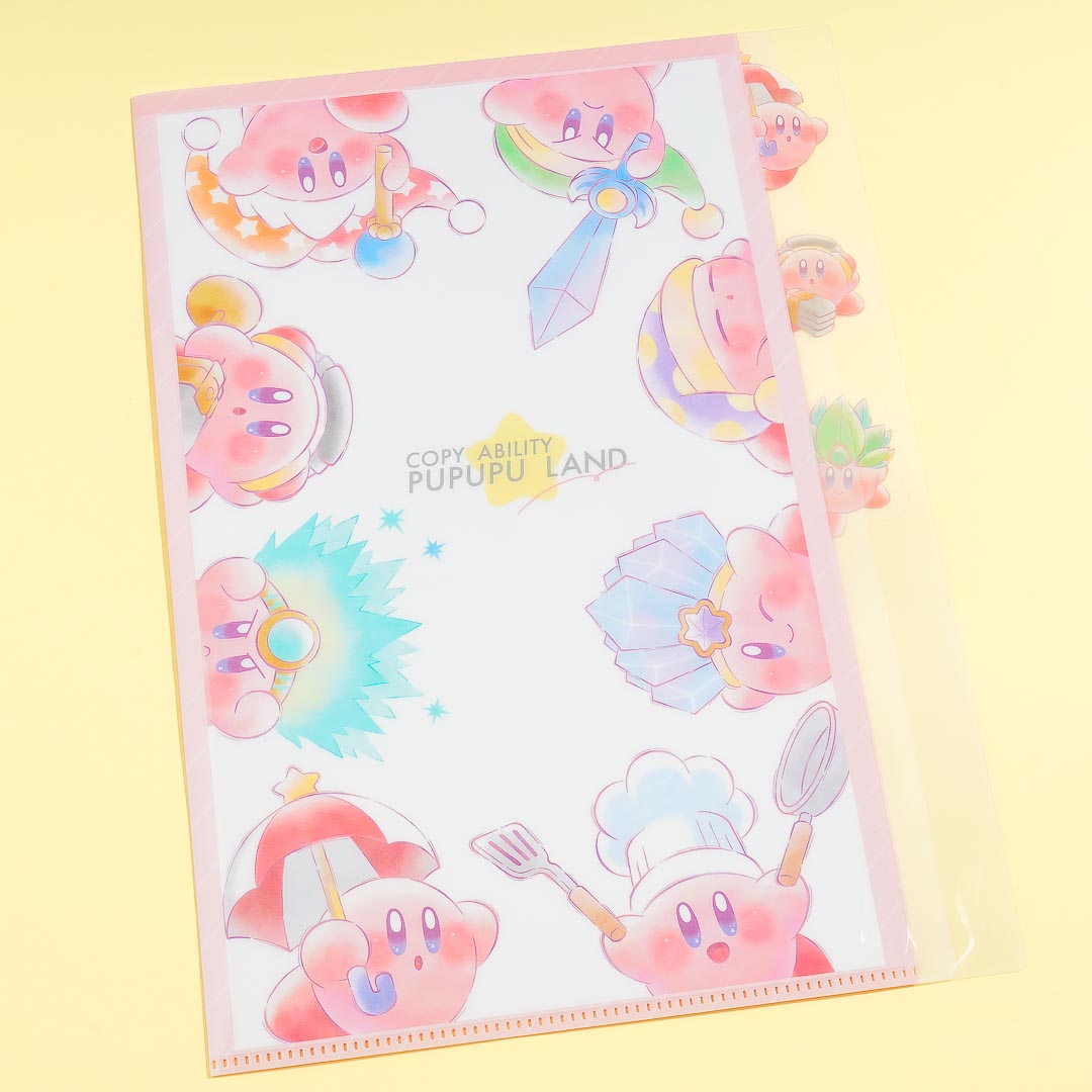 Use this cute folder to organize your documents for work or for school. It's decorated with prints of Kirby using his copy ability! This folder has 3 index tabs that you can use to arrange your papers properly.