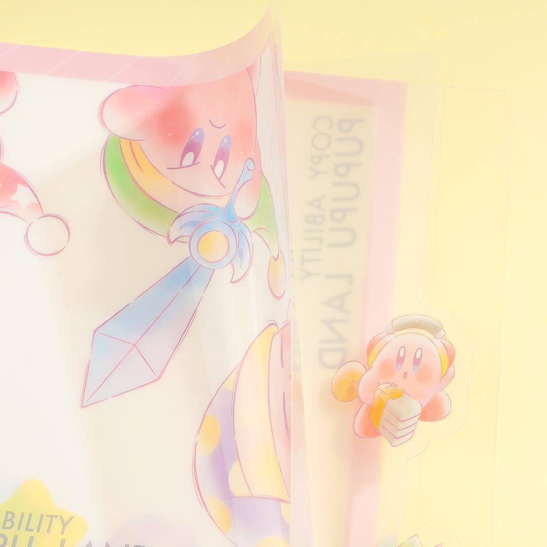 I loved Kirby All Stars and all the powers so this was a must. This clear file has dividers and the front is clear too so you can see. Wanted to use but too cute that I stored it away for now.