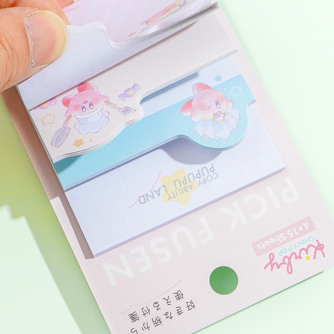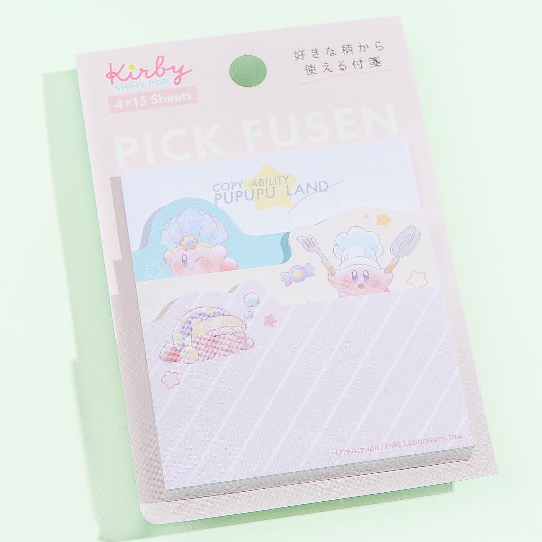 Write your reminders on this set of sticky notes that come in four different sizes! It showcases kawaii die-cut prints of Kirby using his Copy Ability in Pupupu Land.