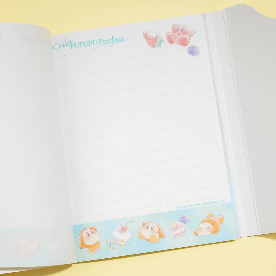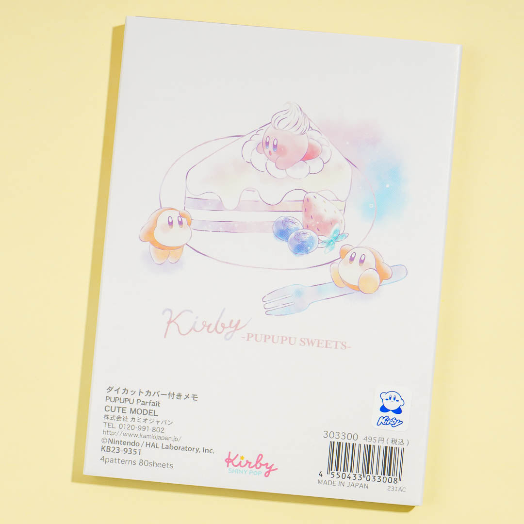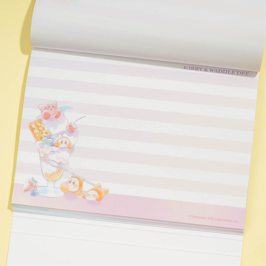 Write poems and short stories in this kawaii notepad! It features cute prints of Kirby and Waddle Dee enjoying a parfait. This A6-sized notepad also comes with a cute die-cut flip cover!