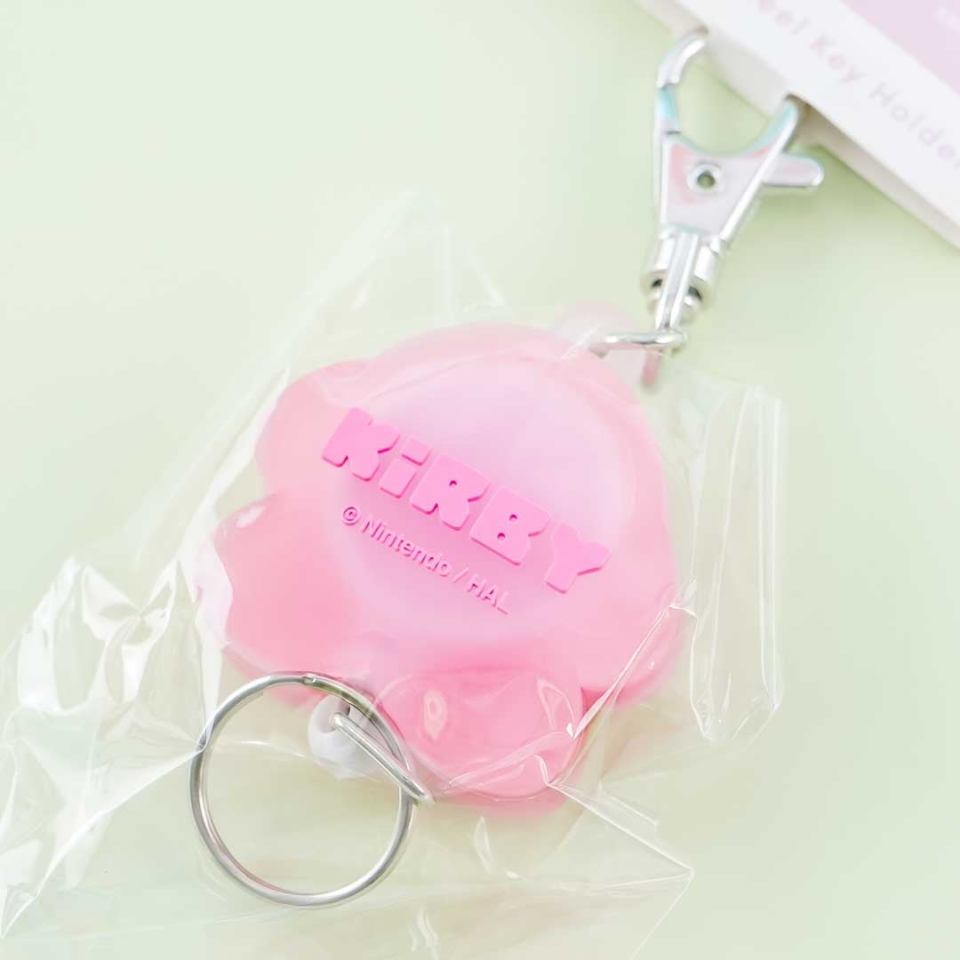 Keep your house keys organized by using this kawaii Kirby rubber key holder! It comes with a metal clip and a pull-out reel with a keyring attached to it.