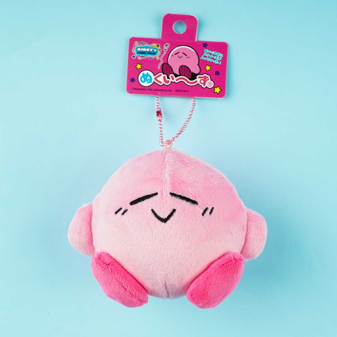 Have a blast playing with this Kirby plushie that’s smiling with closed eyes! This medium-sized cutie is made of super-soft polyester and comes with a removable ball chain — so you can hang it to your bedpost.