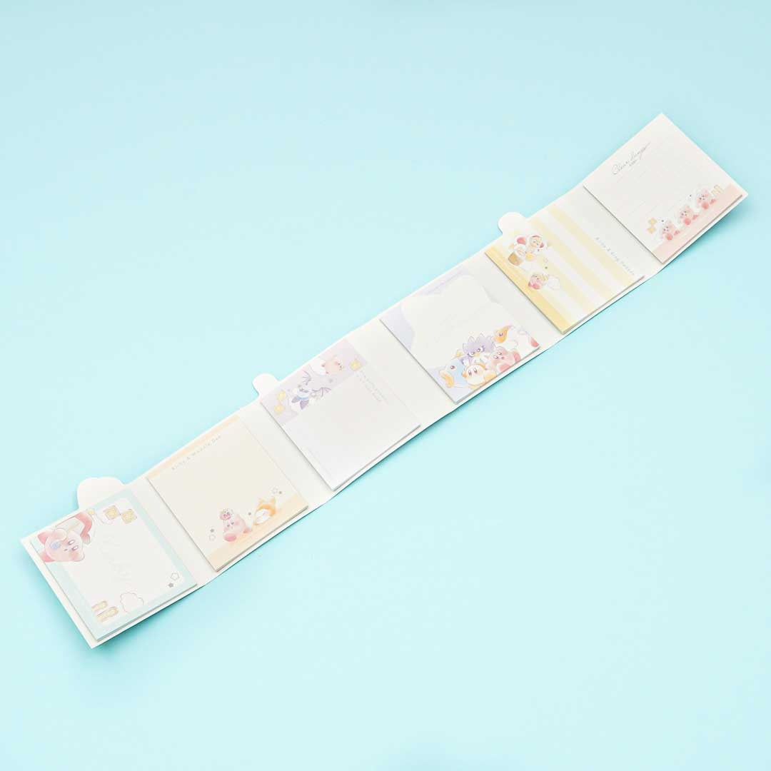Have fun writing short sweet notes to your friends using this kawaii memo set! It comes with six pads that have different designs featuring pastel prints of Kirby and comes in a foldable cardboard case.