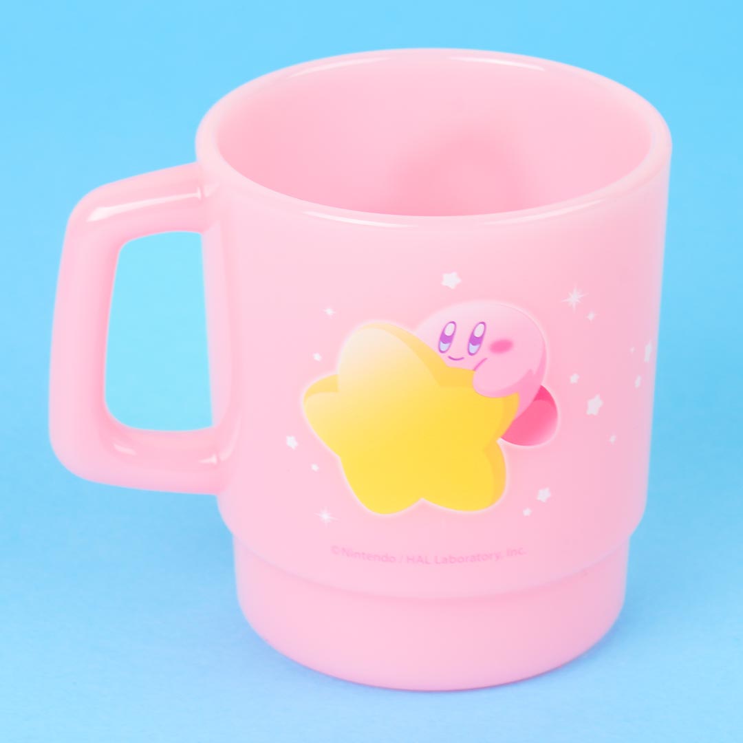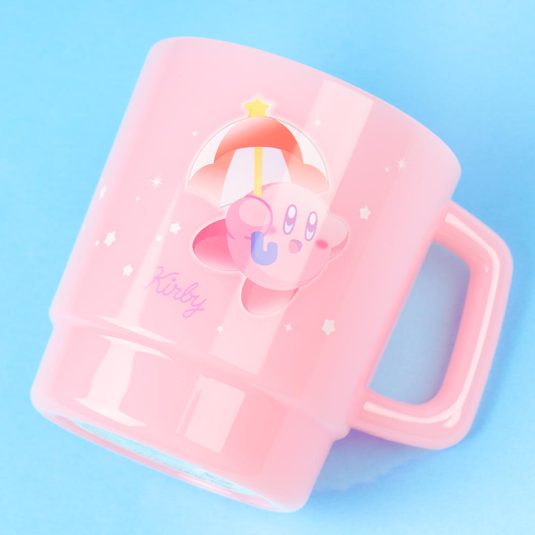 Sip your favorite hot or cold chocolate drink using this kawaii mug! It has a super cute print of Kirby flying off using a parasol. This mug can be stacked on top of other similar-shaped cups.