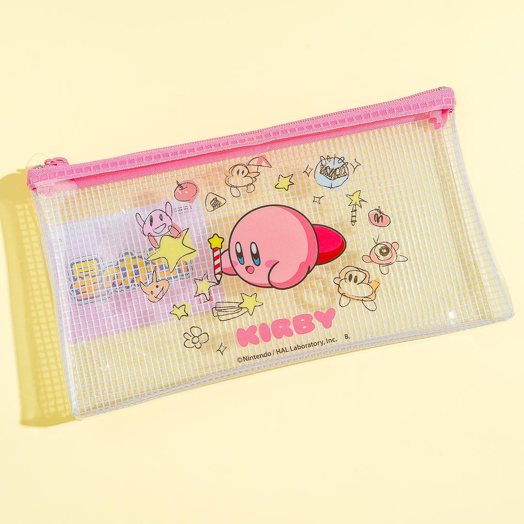 Use this clear flat case to store your pens, pencils, markers, and other things. This pen case features prints of Kirby scribbling away on the floor! It has a zipper closure to keep your things safe and secure.