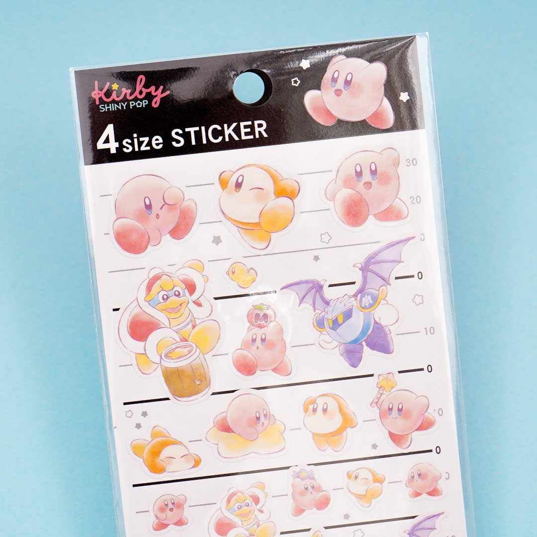 Enjoy jazzing up your book covers with these cute stickers! Each die-cut piece is made of art seal paper and features a different Kirby character! The seals included in the sheet come in four various sizes.