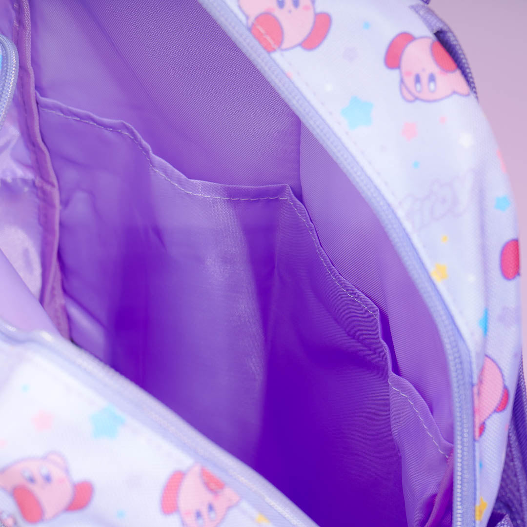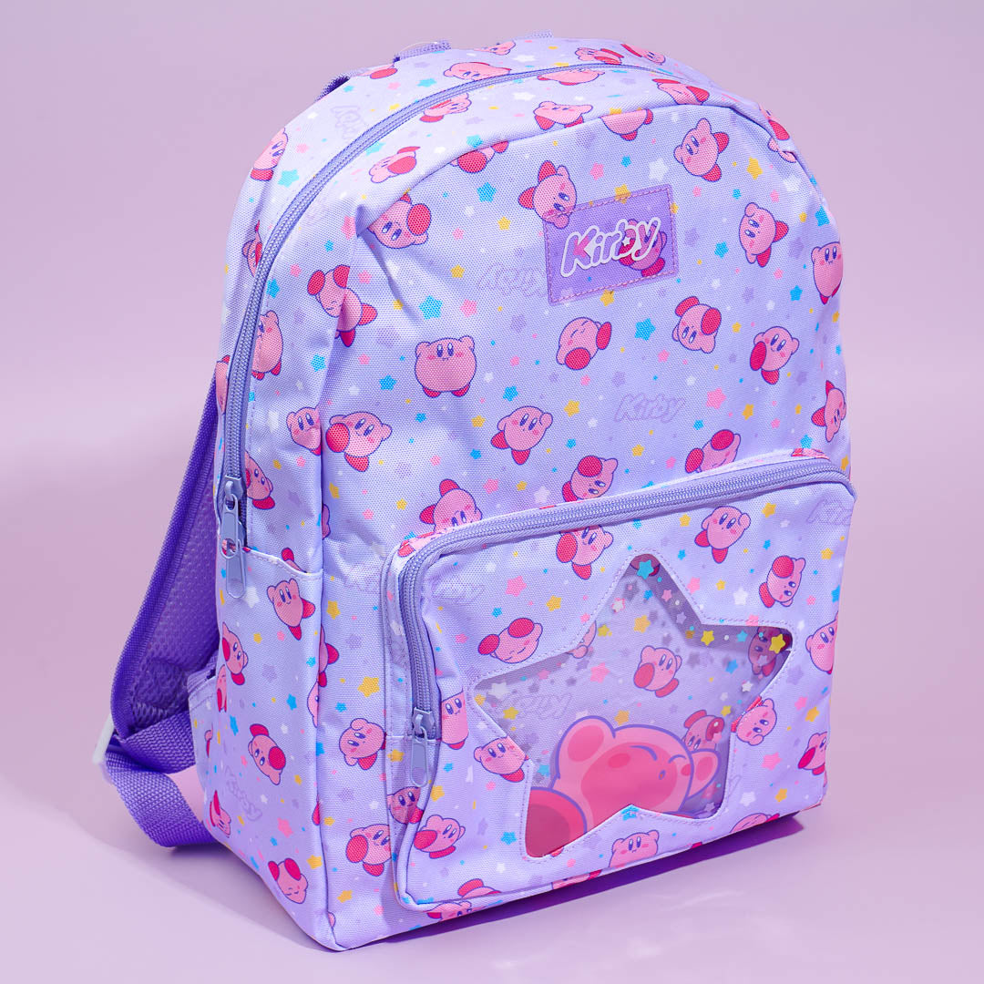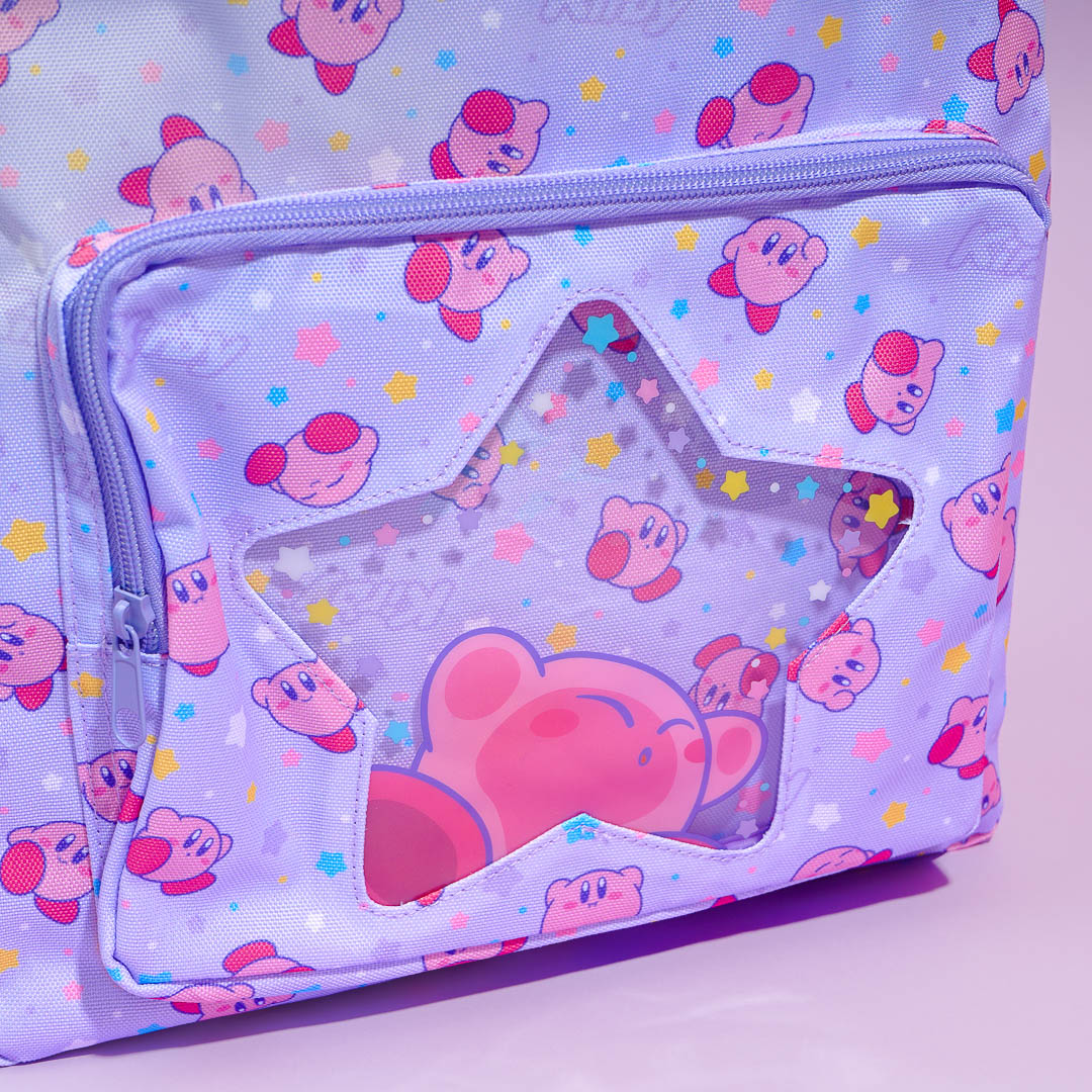 This cute backpack has cute Kirby prints all over! It also features a star-shaped window pocket that you can use to display your favorite mini plushie. This bag has a large capacity so you can use it when traveling.