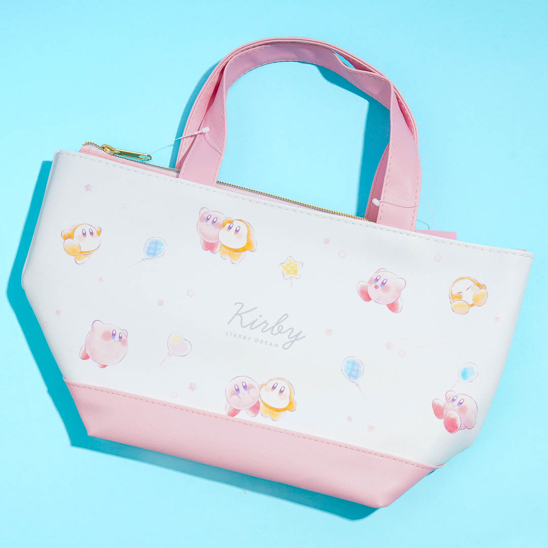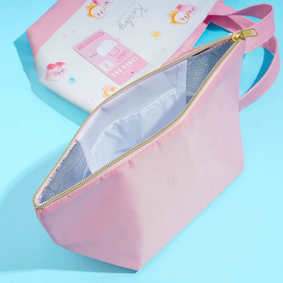 Bring this handbag-style lunch tote with you to school or work! It’s decorated with kawaii prints of Kirby and Waddle Dee stargazing together! The bag also comes with a removable insulated pouch that can keep your snacks and drinks fresh.