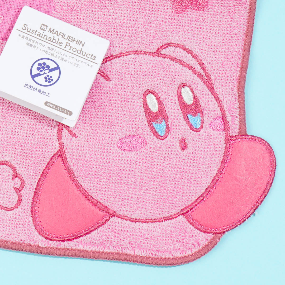 Don't forget to bring along this cute face towel when you go walking around the park. It features prints of Kirby running with stars! This handy towel is perfect for keeping your face nice and fresh.