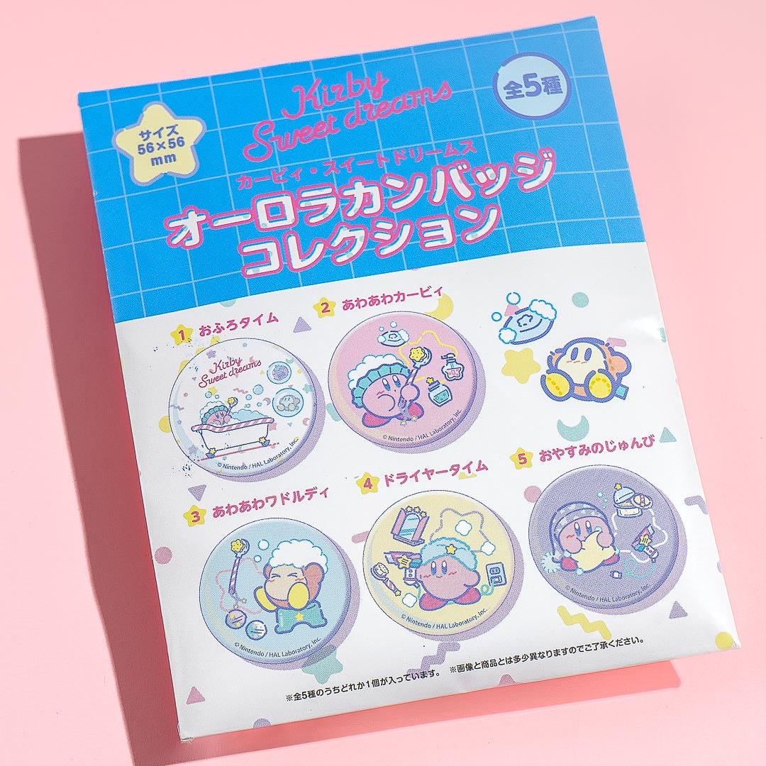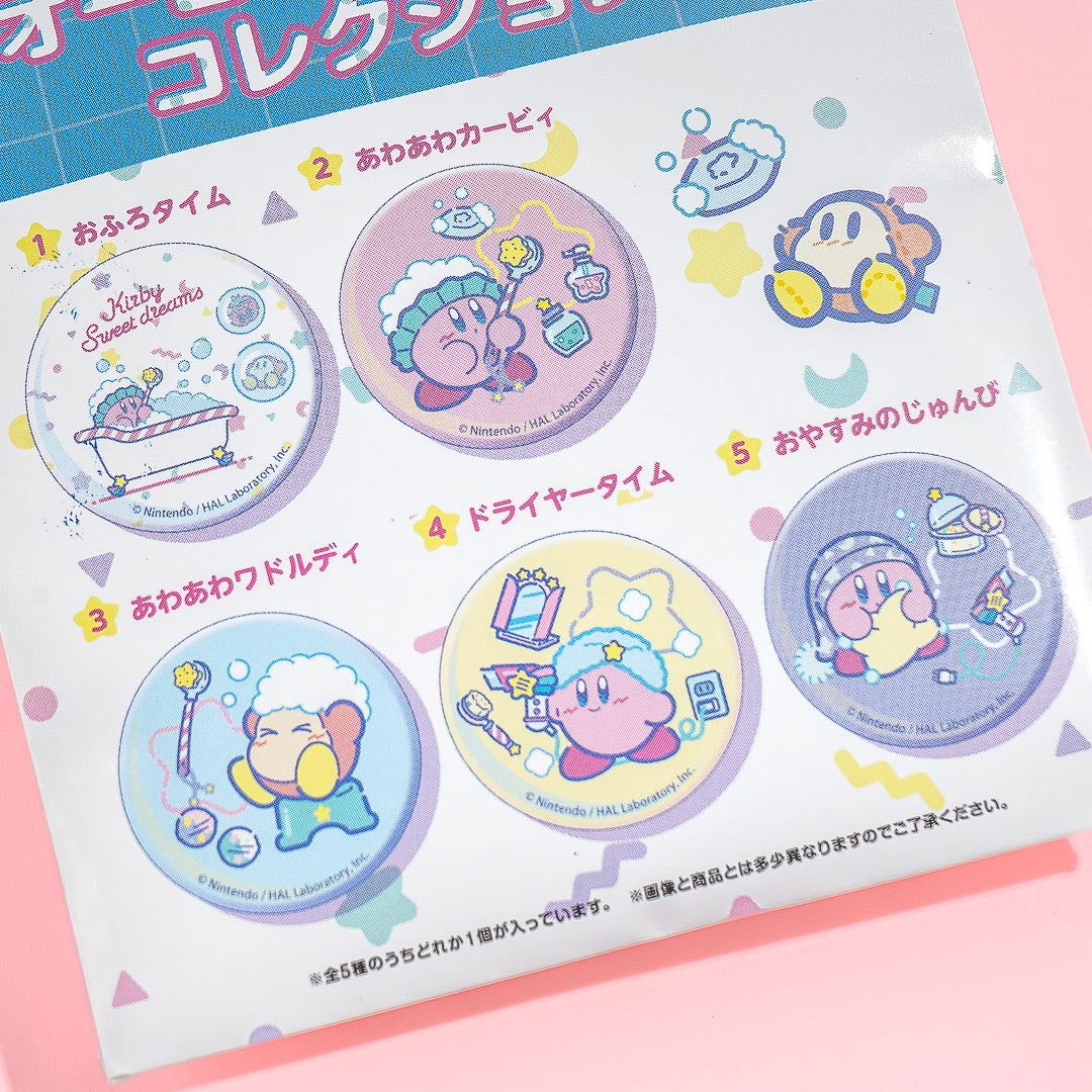 Add a touch of cuteness to your bag when you pin this super cute can badge! The glittering holographic design features illustrations of Kirby and Waddle Dee getting ready for bed.