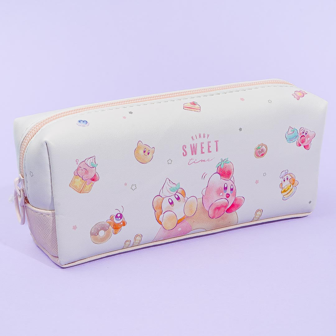 This box-shaped pen case is decorated with kawaii prints of Kirby and Waddle Dee trying out donuts, cakes, pies, and other delicious desserts! Use this to keep your favorite pens and markers organized.