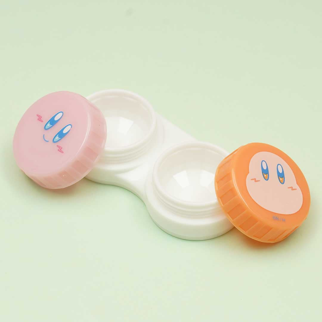 Store your contact lenses safely inside this kawaii case! The left screw cap is decorated with a Kirby print and the other cap has an illustration of Waddle Dee.