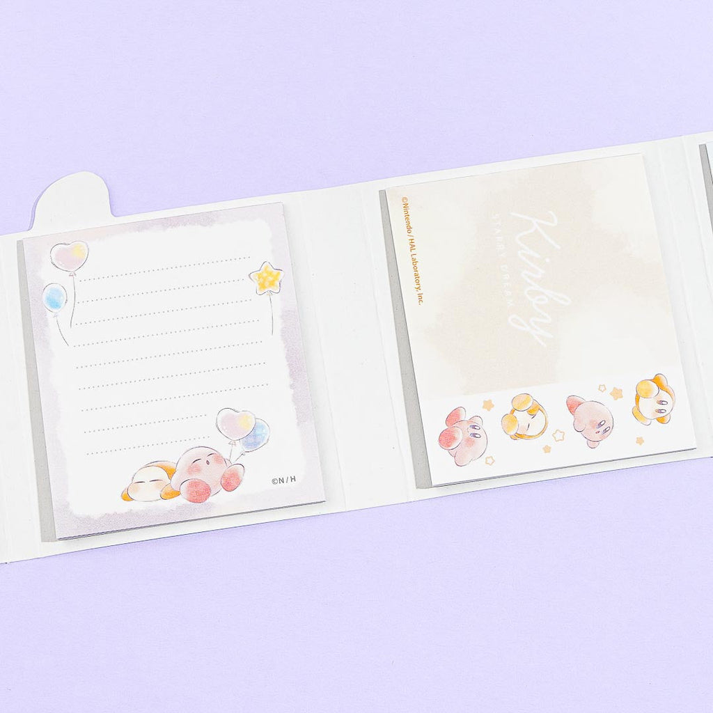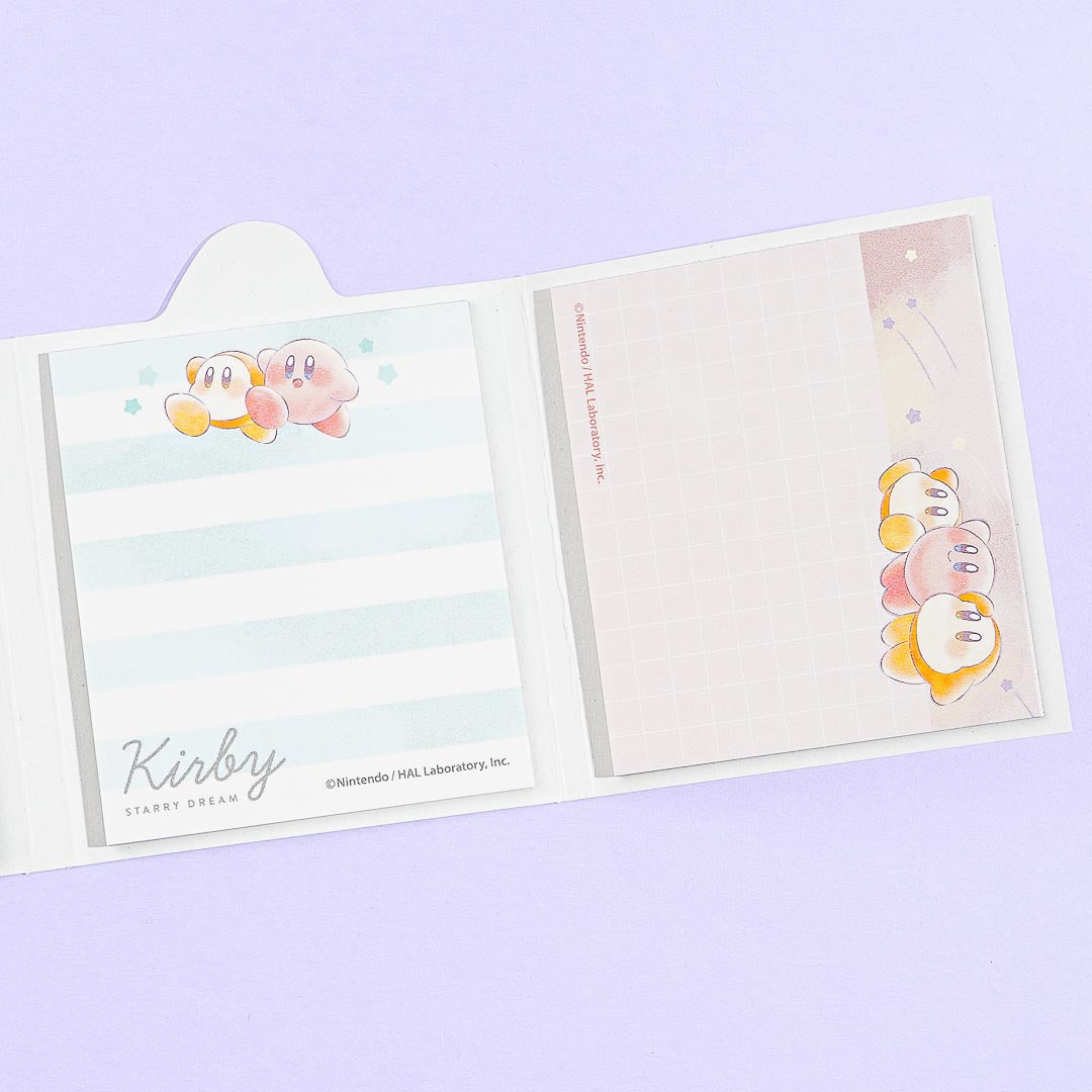Write down reminders using this super kawaii memo pad set illustrated with Kirby and Waddle Dee! It comes in a folding booklet case that you can easily bring with you. Put this cute memo pad set on your desk for you to write on when you need to!