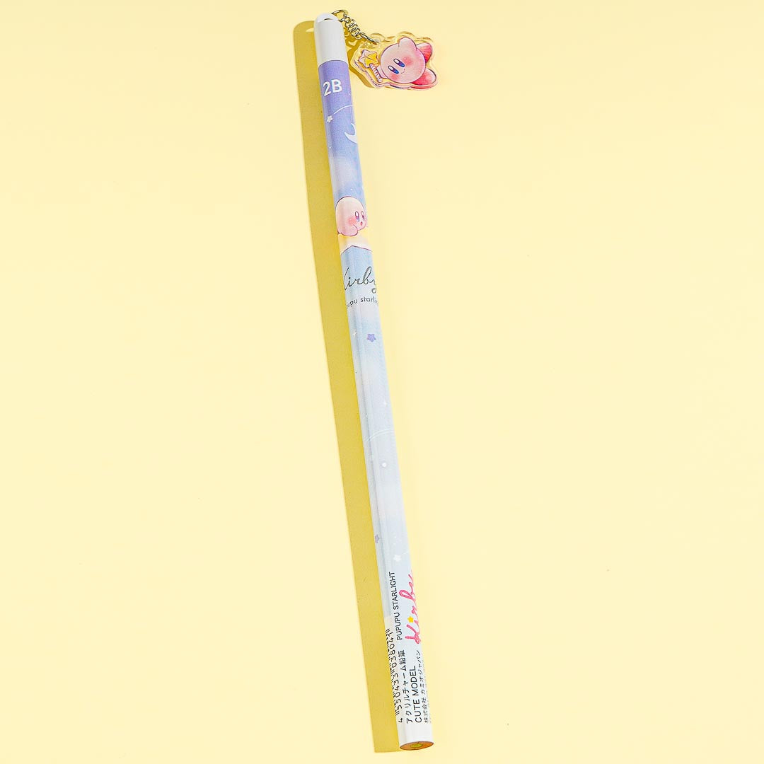This cute 2B pencil is illustrated with Kirby riding the Warp Star! Use it to write down video game cheat codes. The end of this pencil has a kawaii acrylic Kirby charm.