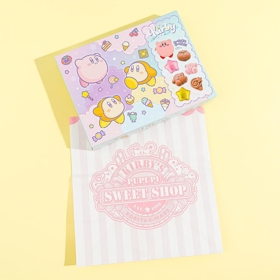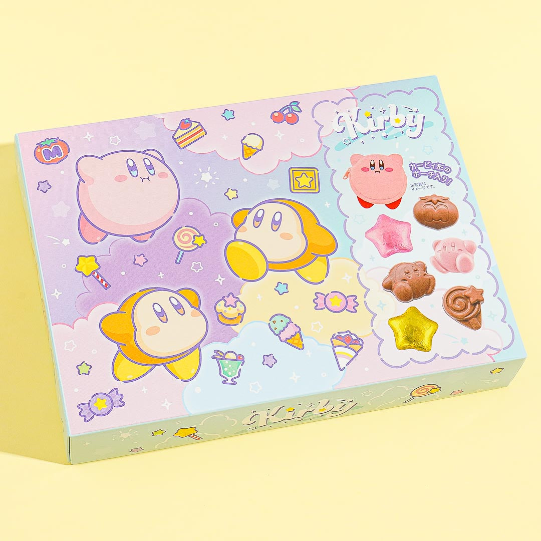Enjoy this pack of chocolate candies! The candies are shaped like Kirby, Waddle Dee, and stars. This pack comes with a Kirby Sweet Shop pouch so it's also a great gift for your buddy!