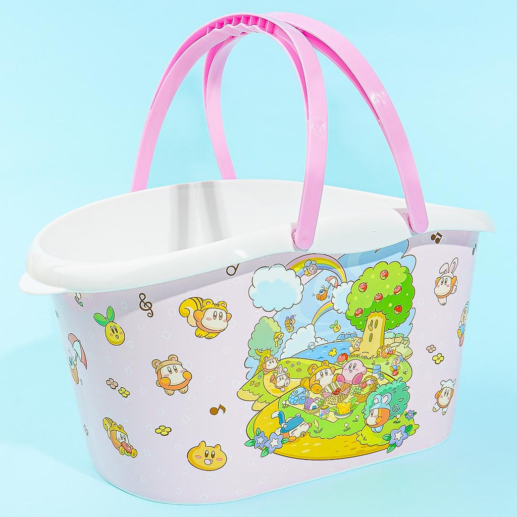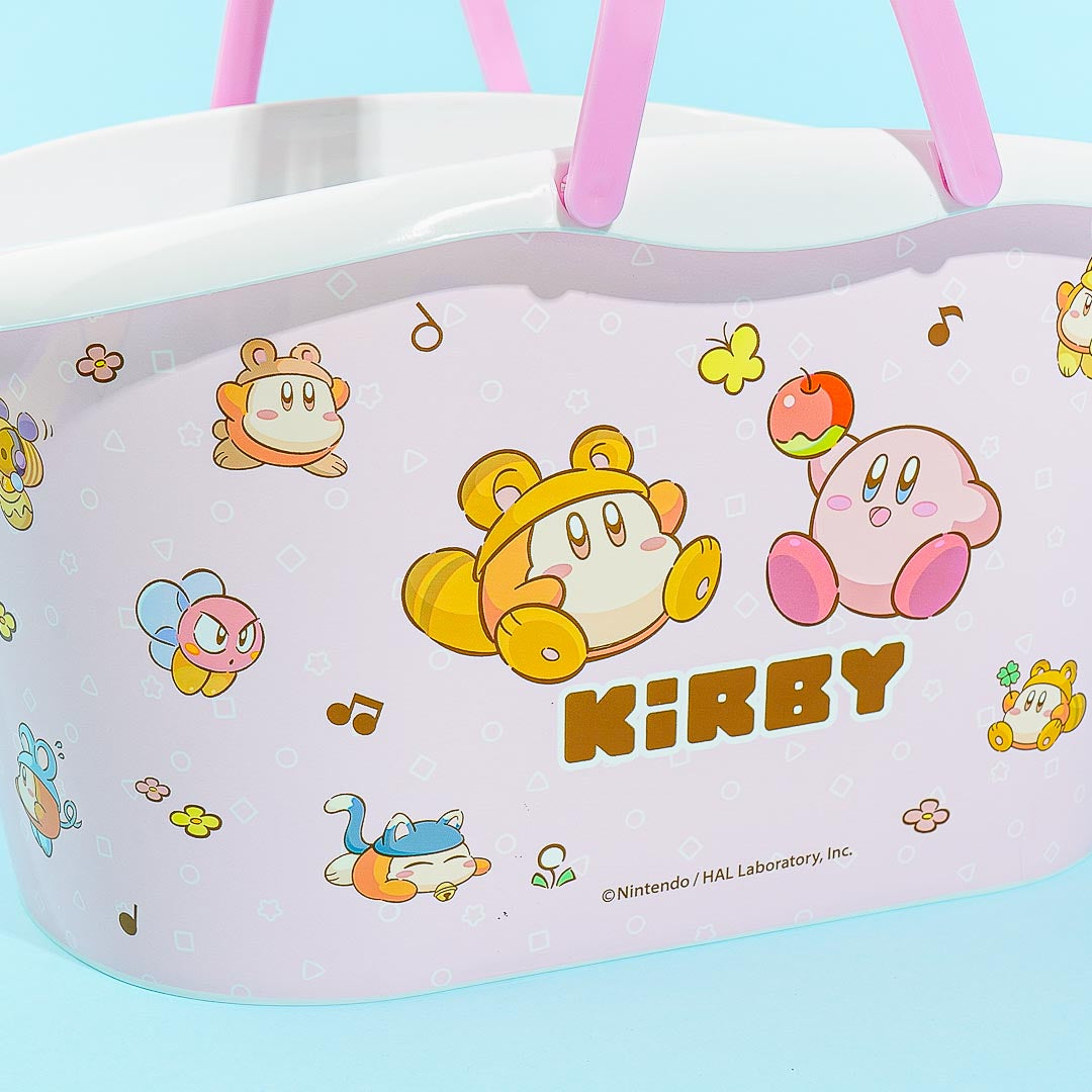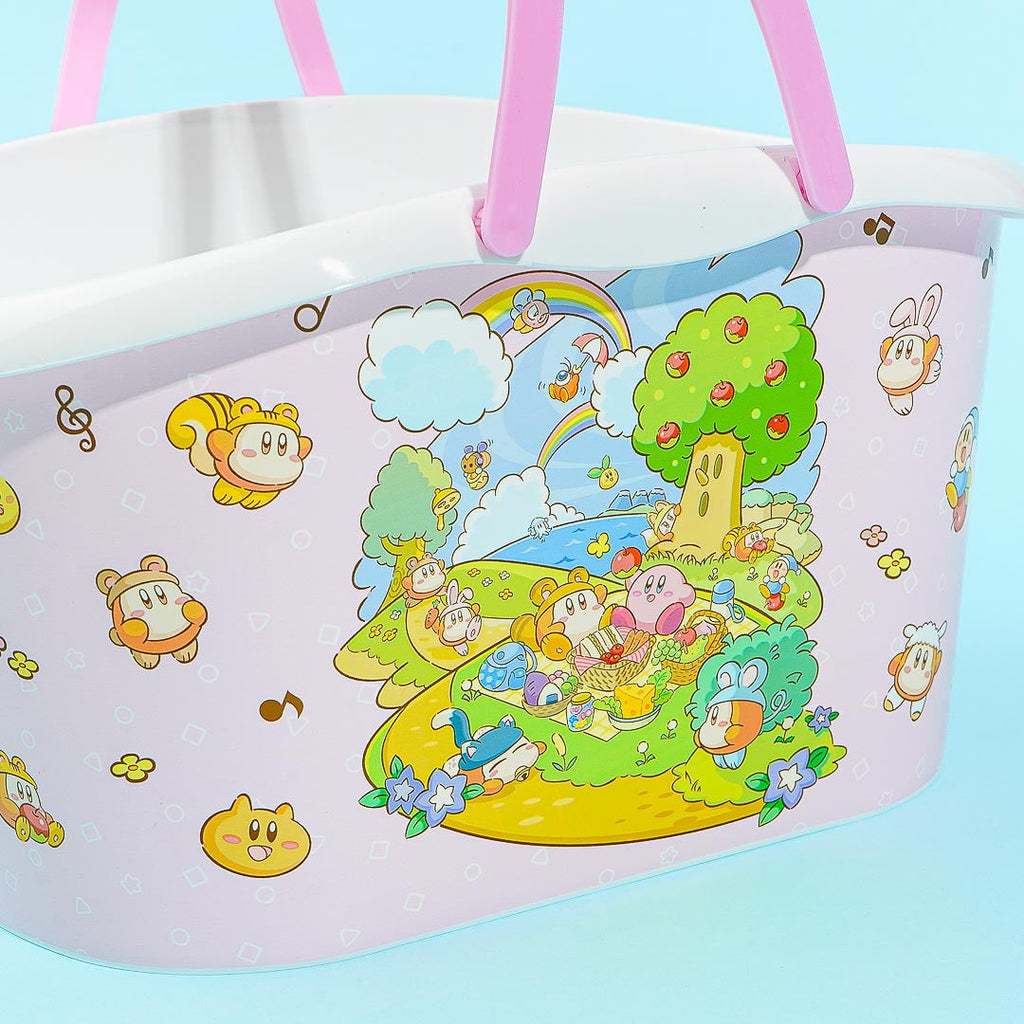 This super cute plastic basket features prints of Kirby having a picnic in the forest with his friend Waddle Dee who's dressed as a forest animal. Use this to organize your stationery, accessories, and other knickknacks! It comes with handles, so it's easy to carry.