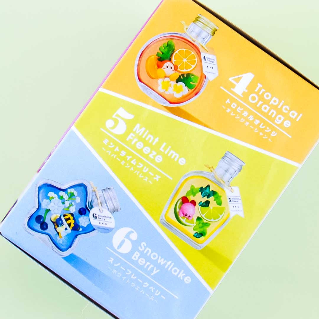“Kirby Pupupu Herbarium” miniatures series features Kirby the space alien inside different bottled fruits and herbs concoctions! Items in the series include bottles with Snowflake Berry, Mint Lime Freeze, Tropical Orange, Twinkle Clover, Blossom Raspberry, and Fresh Star Fruit. Each replicated item is well-detailed!