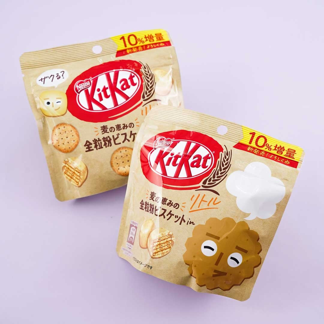 This pack of chocolate-covered wafers is perfect for healthy snacking! Not only are the bite-sized wafers made with whole wheat, but whole-grain biscuits are kneaded into the white chocolate as well. You'll receive a random package design when you order.