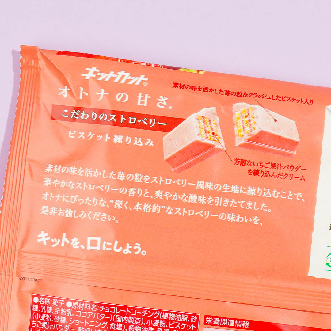 • A bag of strawberry-flavored milk chocolate bars with sweet and tangy strawberry cream filling