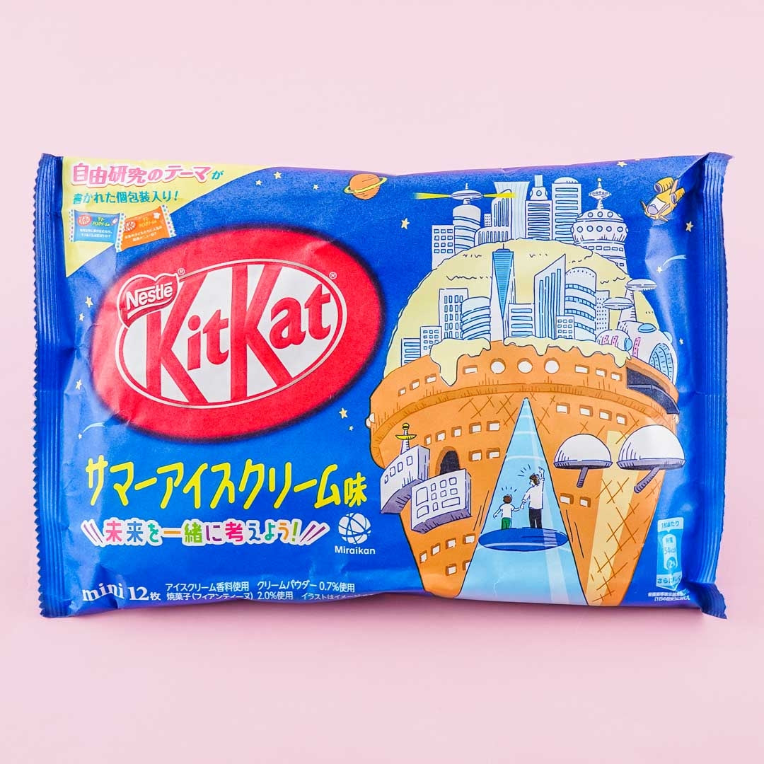 Have fun answering questions created by the Future Science Museum of Japan written on the packaging of each individually wrapped chocolate bar! These mini-sized chocolate bars are flavored with ice cream and feuilletine with cream powder kneaded between the wafers!