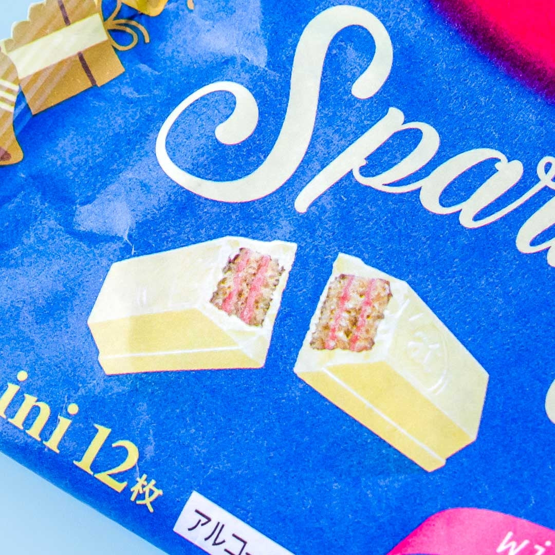 • A pack of white-chocolate covered wafers with layers of strawberry powder and powdered wine